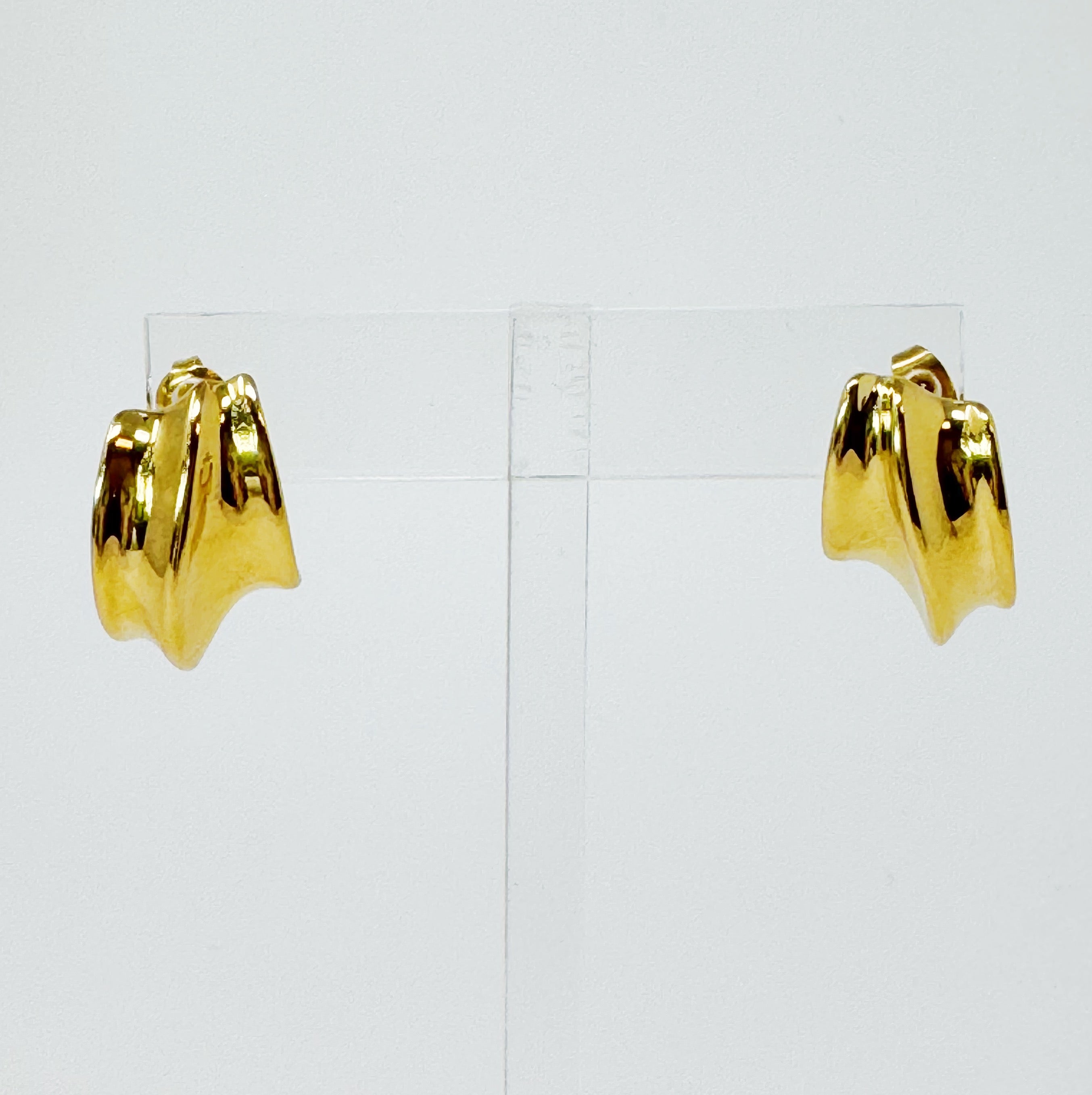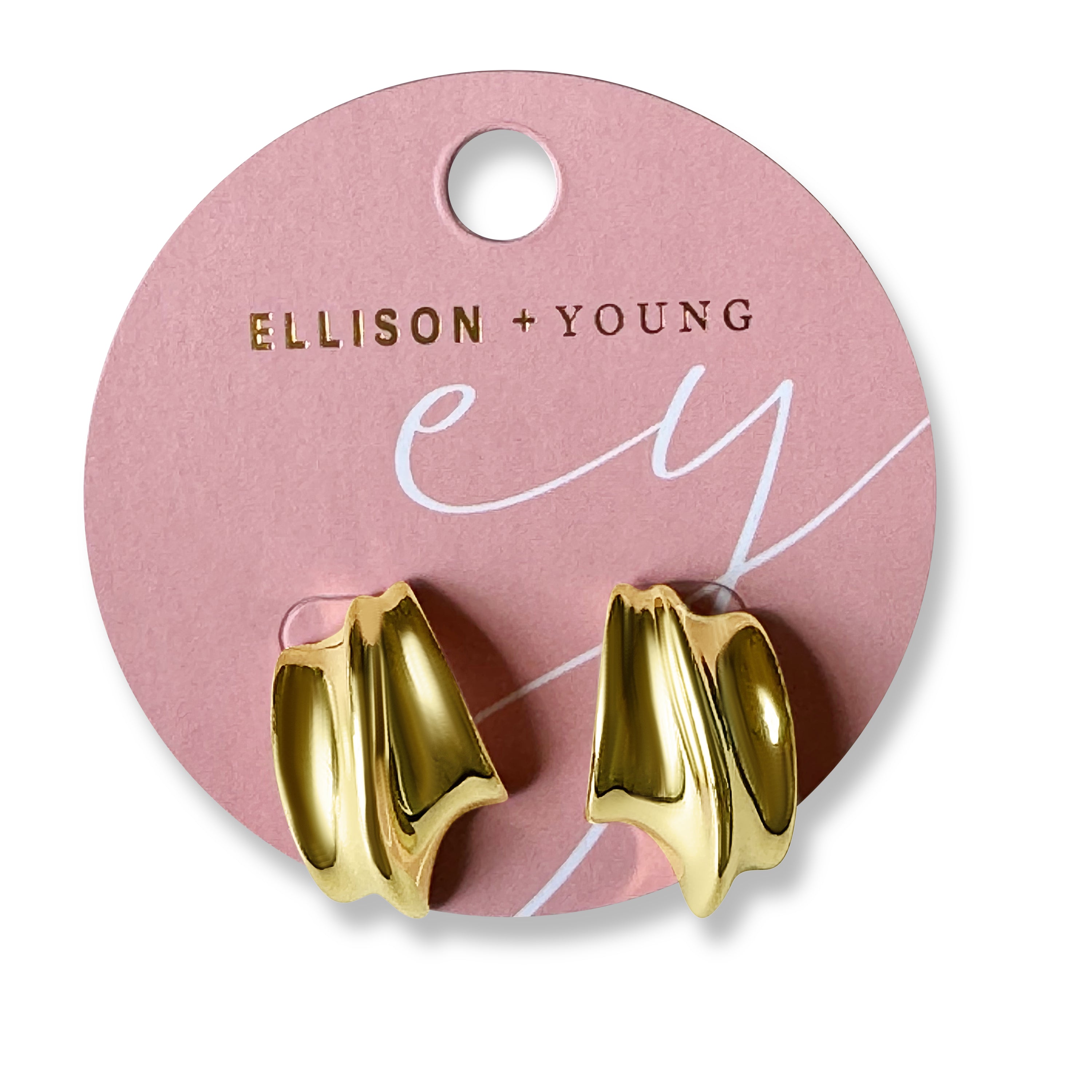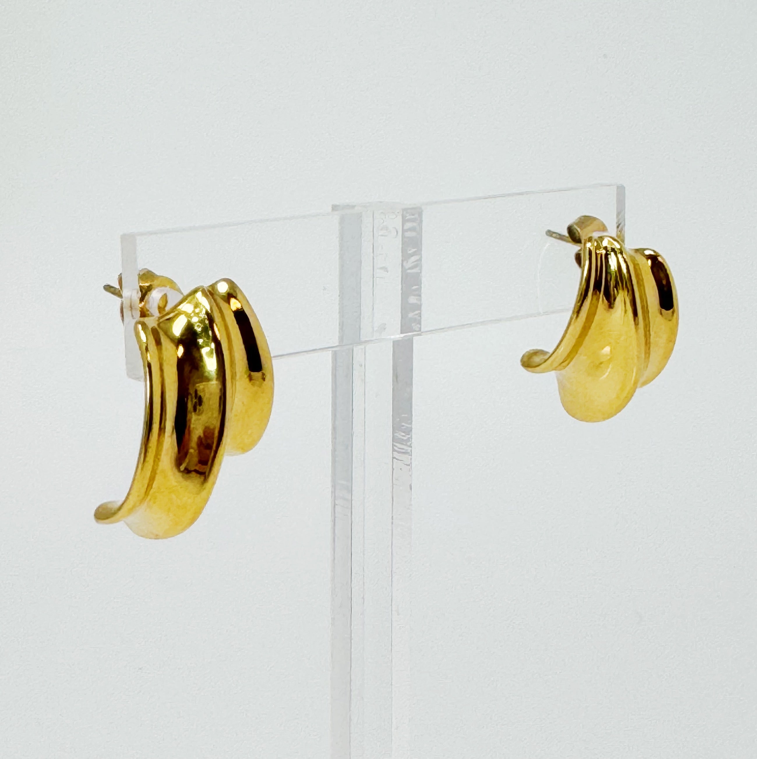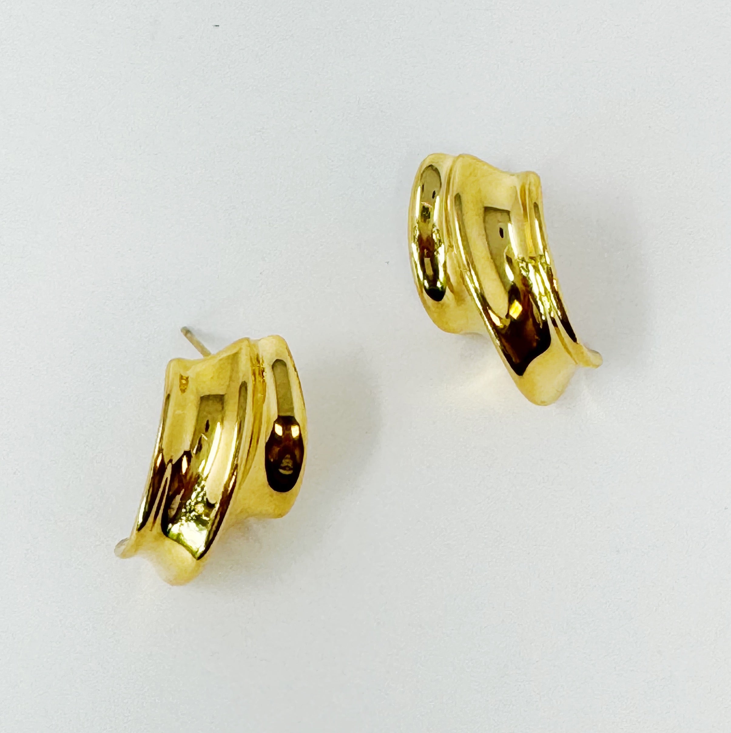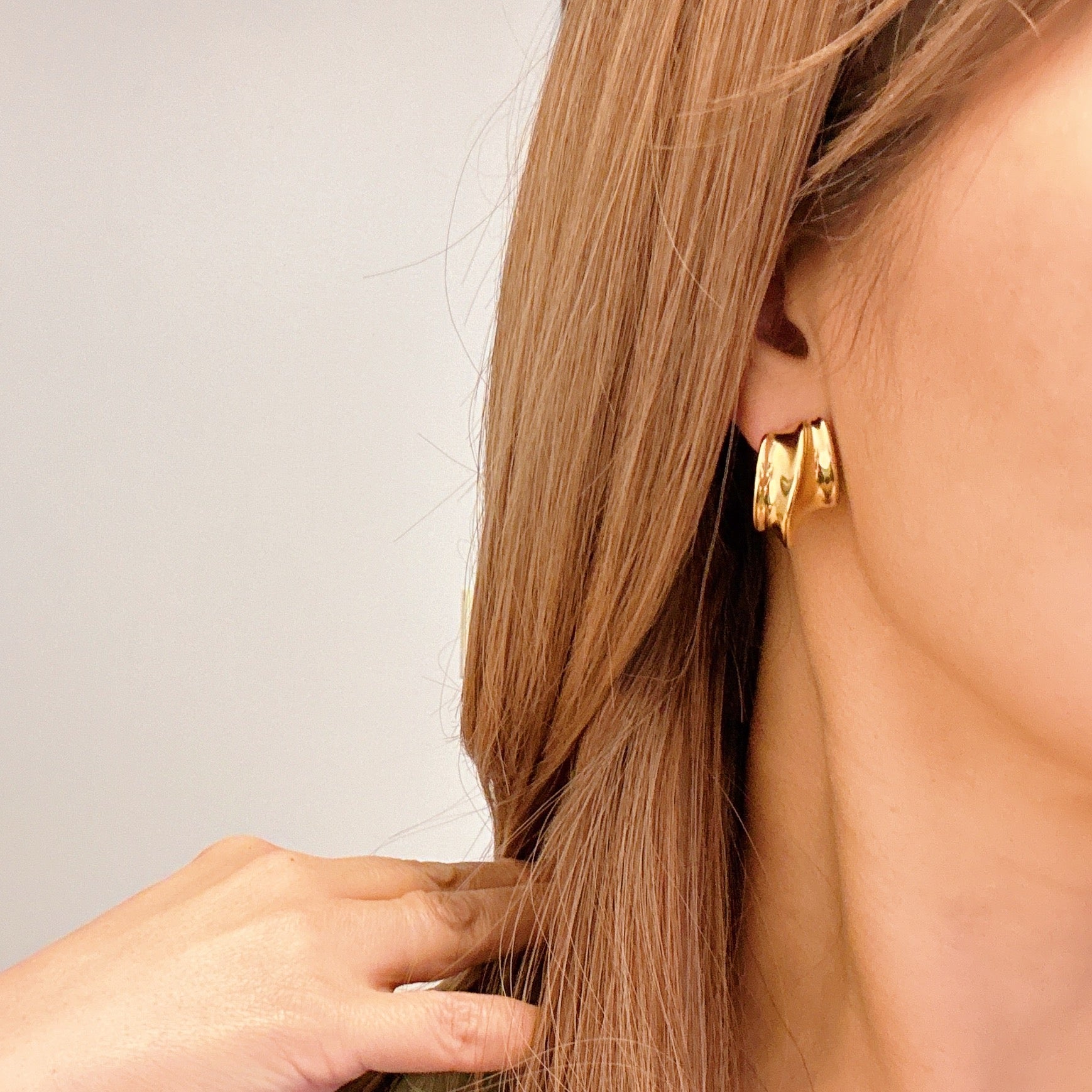 The Kelly Golden Hoop Earrings feature a dimensional body that adds depth and sophistication to your look. Their subtle yet stylish hoops are designed to catch the light beautifully, making them a standout piece in your jewelry collection. Whether you're dressing up for a special occasion or adding a touch of glamour to your everyday wear, these earrings are the perfect choice.