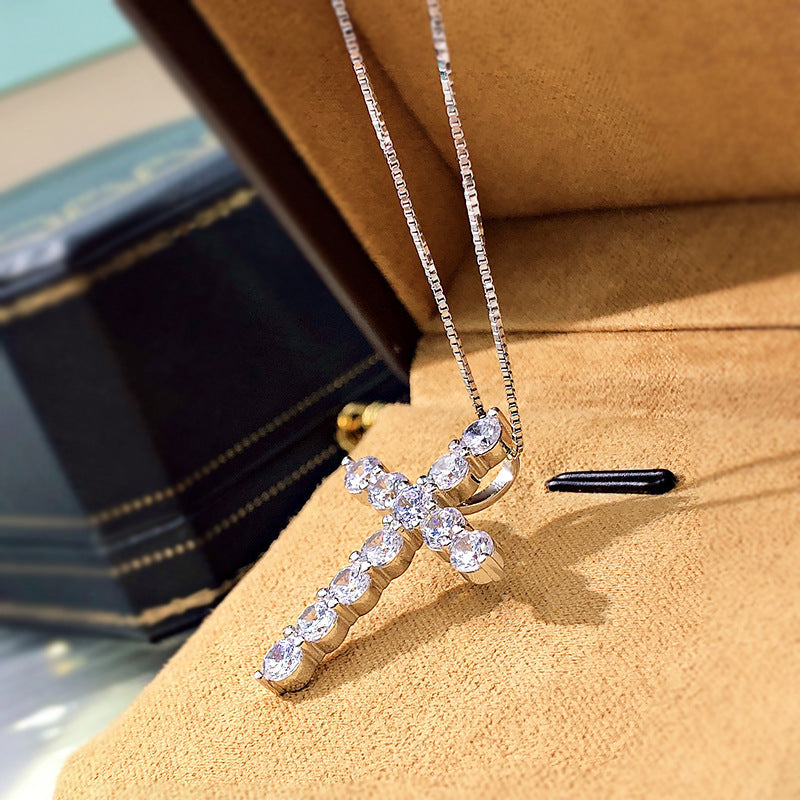 Embrace your faith with our exquisite cross necklace, designed to keep your beliefs close to your heart. Made from high-quality 925 sterling silver, this necklace is not only a beautiful accessory but also a meaningful symbol of your spirituality. The pendant features a stunning cross design, elegantly paved with top-grade cubic zirconia stones that sparkle brilliantly, making it a perfect piece for both everyday wear and special occasions.