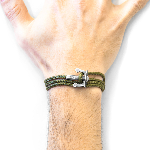 The Khaki Green Union Anchor Silver and Rope Bracelet was both designed and skilfully handcrafted completely in Great Britain. Combining British craft manufacturing with a discerning modern-minimalist style, this ANCHOR & CREW bracelet features: