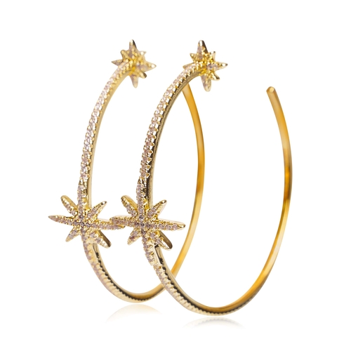 The LEILA Hoop Earrings are crafted from durable brass, ensuring longevity and a beautiful finish. The earrings feature brilliant cut cubic zirconias that mimic the sparkle of real diamonds, making them an affordable yet luxurious choice. The star design adds a whimsical touch, making these earrings perfect for both casual and formal occasions.