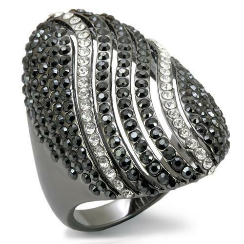 Dropship LO1674 - TIN Cobalt Black Brass Ring with Top Grade Crystal in Jet