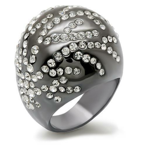 At the heart of the LO1682 ring is a top grade crystal in a clear color. This crystal is known for its brilliance and clarity, making it a captivating focal point of the ring. The clear stone complements the black finish beautifully, creating a striking contrast that is sure to catch the eye. Whether you're dressing up for a special event or looking for a statement piece for everyday wear, this ring is versatile enough to suit any occasion.