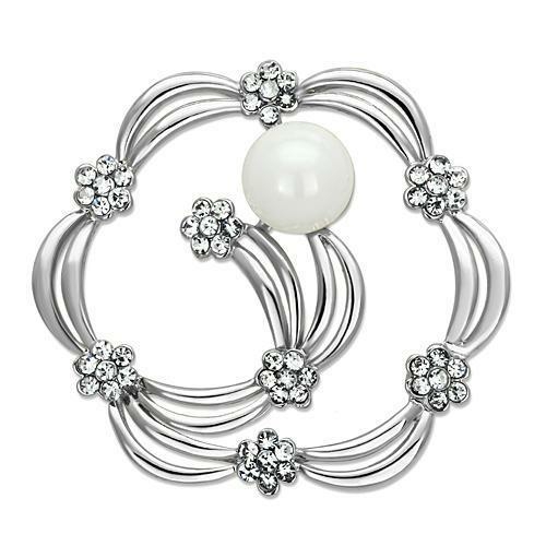 Introducing the LO2809 Imitation Rhodium White Metal Brooch, a stunning accessory that combines elegance and sophistication. This exquisite brooch features a beautiful synthetic pearl centerpiece, making it a perfect addition to any jewelry collection. Crafted from high-quality white metal and finished with imitation rhodium, this brooch not only looks luxurious but is also lightweight, weighing approximately 9 grams. Whether you're dressing up for a special occasion or adding a touch of glamour to your everyday outfit, this brooch is sure to make a statement.