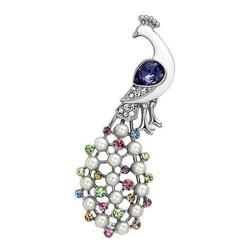 Elegant LO2896 Imitation Rhodium White Metal Brooch featuring multi-color top grade crystals, perfect for enhancing any outfit.