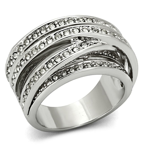 The LO2995 Rhodium Brass Ring with Top Grade Crystal in Clear is a stunning piece of jewelry that combines elegance and durability. This exquisite ring is designed for those who appreciate fine craftsmanship and high-quality materials. With its rhodium finish, this ring not only looks beautiful but also offers excellent resistance to tarnishing, ensuring that it maintains its shine for years to come.