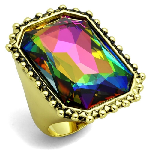 Introducing the exquisite LO3531 Gold Brass Ring with Top Grade Crystal in Peacock, a stunning piece of jewelry that combines elegance and sophistication. This ring is designed for those who appreciate fine craftsmanship and unique style. Made from high-quality brass and finished in a luxurious gold tone, this ring is not only beautiful but also durable, ensuring it will be a cherished addition to your jewelry collection for years to come.