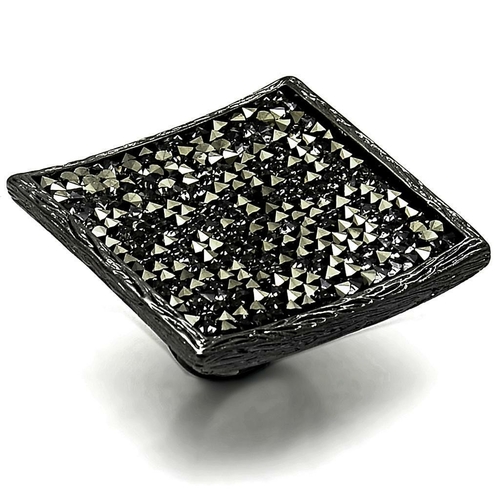 The center stone of the LO3589 ring is a top grade crystal, renowned for its clarity and brilliance. The light gray color of the crystal complements the black finish of the ring, creating a striking contrast that is sure to catch the eye. Whether you're dressing up for a special occasion or looking for a statement piece for everyday wear, this ring is versatile enough to suit any style.