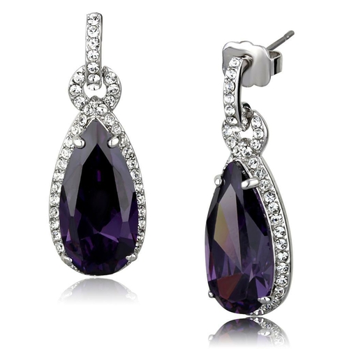 Introducing the exquisite LO3756 Rhodium Brass Earrings, a stunning addition to any jewelry collection. These earrings are designed to captivate with their elegant rhodium finish and the striking beauty of AAA Grade cubic zirconia (CZ) in a rich amethyst hue. Perfect for both casual and formal occasions, these earrings are sure to make a statement.