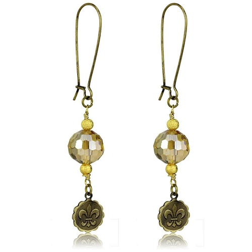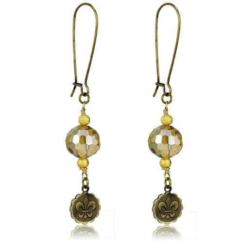 LO3806 Antique Copper White Metal Earrings featuring champagne synthetic glass bead, showcasing vintage elegance and modern design.