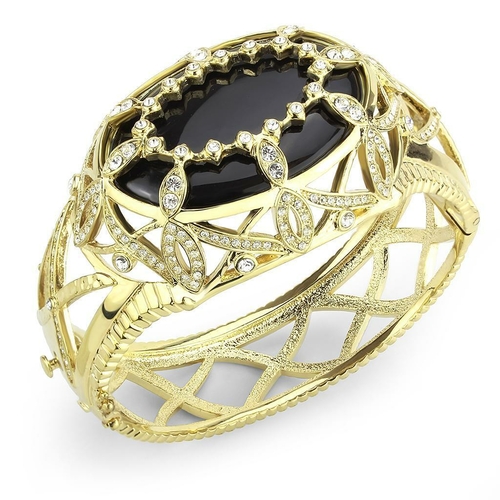 Dropship LO4349 - Gold Brass Bangle with Synthetic in Jet