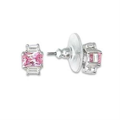 These earrings feature AAA grade cubic zirconia (CZ) stones, known for their brilliance and clarity. The center stone is a beautiful rose color, adding a touch of romance and sophistication to your look. The combination of the high-polished silver and the sparkling CZ creates a striking contrast that is sure to catch the eye.