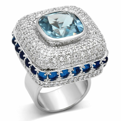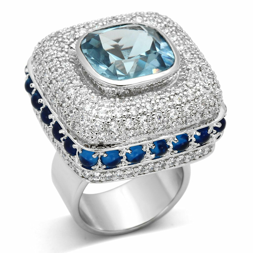 The LOA861 Rhodium Brass Ring is a stunning piece of jewelry that combines elegance and modern design. Crafted from high-quality brass and finished with a luxurious rhodium coating, this ring is not only beautiful but also durable. The centerpiece of this exquisite ring is a synthetic spinel in a captivating London Blue hue, making it a perfect accessory for any outfit.