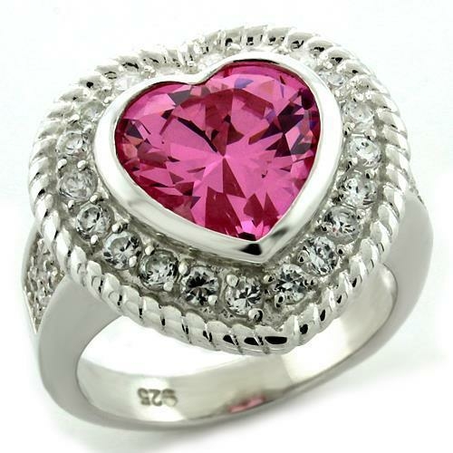 At the heart of this exquisite ring is an AAA Grade cubic zirconia (CZ) stone. Known for its brilliance and clarity, CZ is a popular alternative to diamonds, offering a similar sparkle at a more affordable price. The center stone is beautifully colored in a soft rose hue, adding a touch of romance and sophistication to the design.