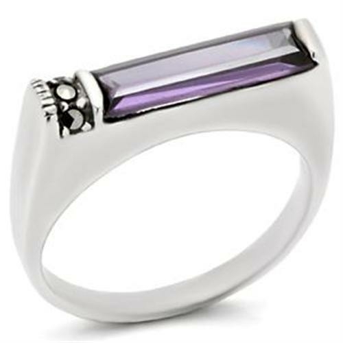 At the heart of this exquisite ring lies an AAA grade cubic zirconia (CZ) stone, renowned for its brilliance and clarity. The center stone is beautifully crafted to mimic the appearance of a natural gemstone, providing an affordable yet luxurious alternative. The amethyst color of the CZ adds a touch of royalty and elegance, making this ring a standout piece in any jewelry collection.