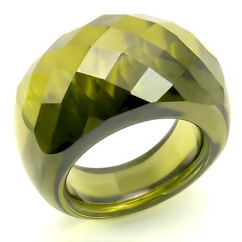 LOS145 Stone Ring featuring AAA Grade CZ in Olivine color, showcasing its elegant design and vibrant gemstone.