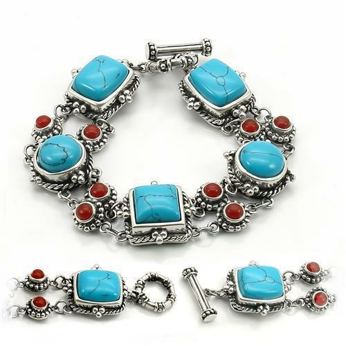 In summary, the LOS270 Antique Tone 925 Sterling Silver Bracelet with Semi-Precious Turquoise is a must-have accessory for anyone who appreciates fine jewelry. Its exquisite design, quality materials, and versatility make it a standout piece that will enhance any jewelry collection.