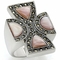 The centerpiece of this ring is a precious Conch stone, which is renowned for its captivating rose color. The soft pink hue of the Conch stone adds a touch of romance and elegance, making it an ideal choice for those who appreciate unique gemstones. The stone is carefully set to ensure it is secure while allowing maximum light to pass through, enhancing its natural beauty.