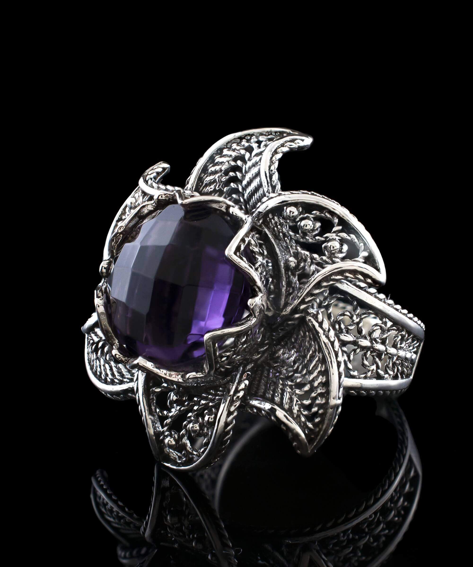 Filigree art is a delicate form of metalwork that involves twisting and curling fine strands of metal to create intricate designs. This ancient technique has its roots in Mesopotamia and Anatolia, and it beautifully combines traditional craftsmanship with modern aesthetics. The filigree design on this ring not only enhances its visual appeal but also tells a story of artistry and heritage.