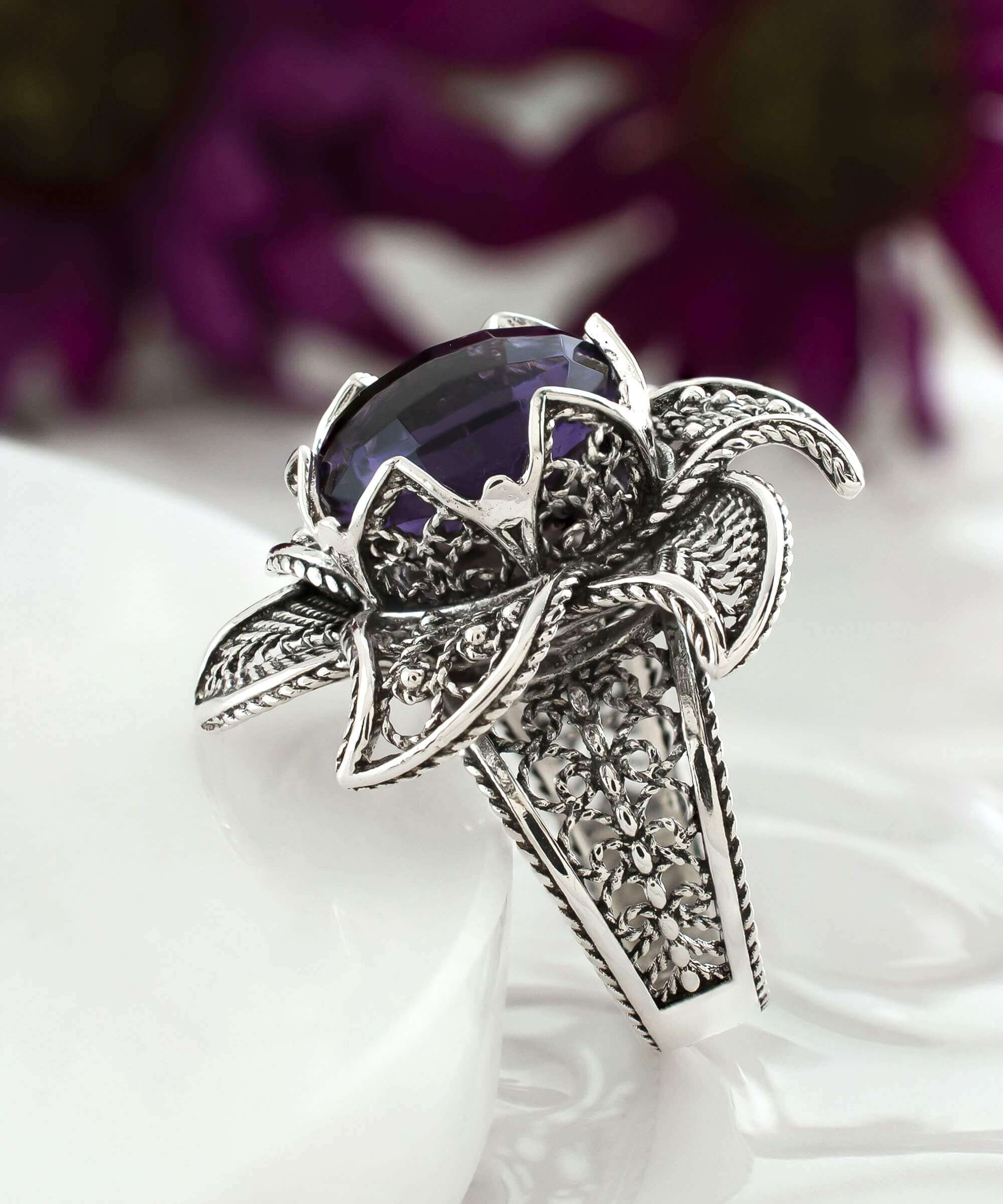 With its stunning design and high-quality materials, the Lotus Flower Amethyst Gemstone Women Silver Statement Ring is more than just an accessory; it's a reflection of your style and personality. Make a statement and express your individuality with this exquisite piece of jewelry that is sure to turn heads and spark conversations.
