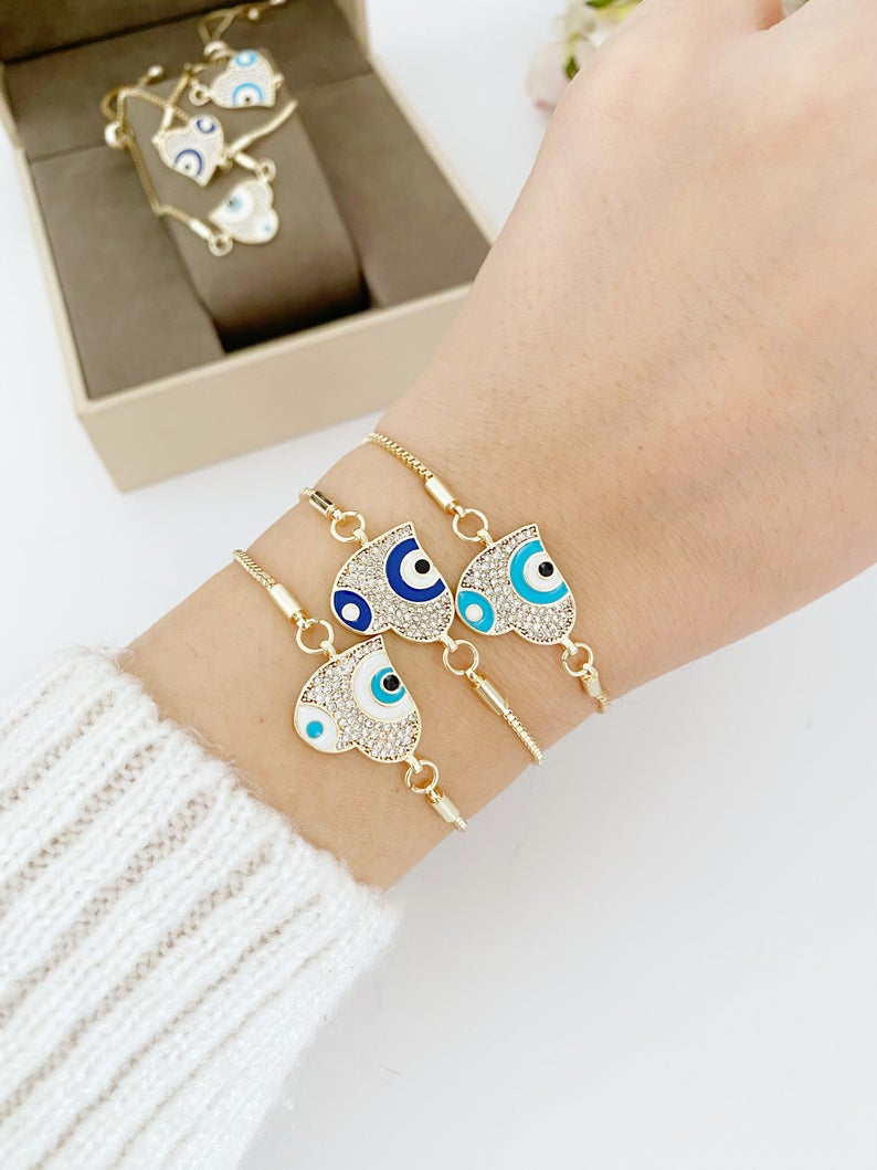 The Love Bracelet is adorned with a zircon heart charm, adding a touch of sparkle and elegance to the overall design. The heart symbolizes love, making this bracelet not just a piece of jewelry but a heartfelt gift that conveys your feelings. The evil eye charm, often associated with protection, adds a unique element to the bracelet, making it a meaningful accessory.