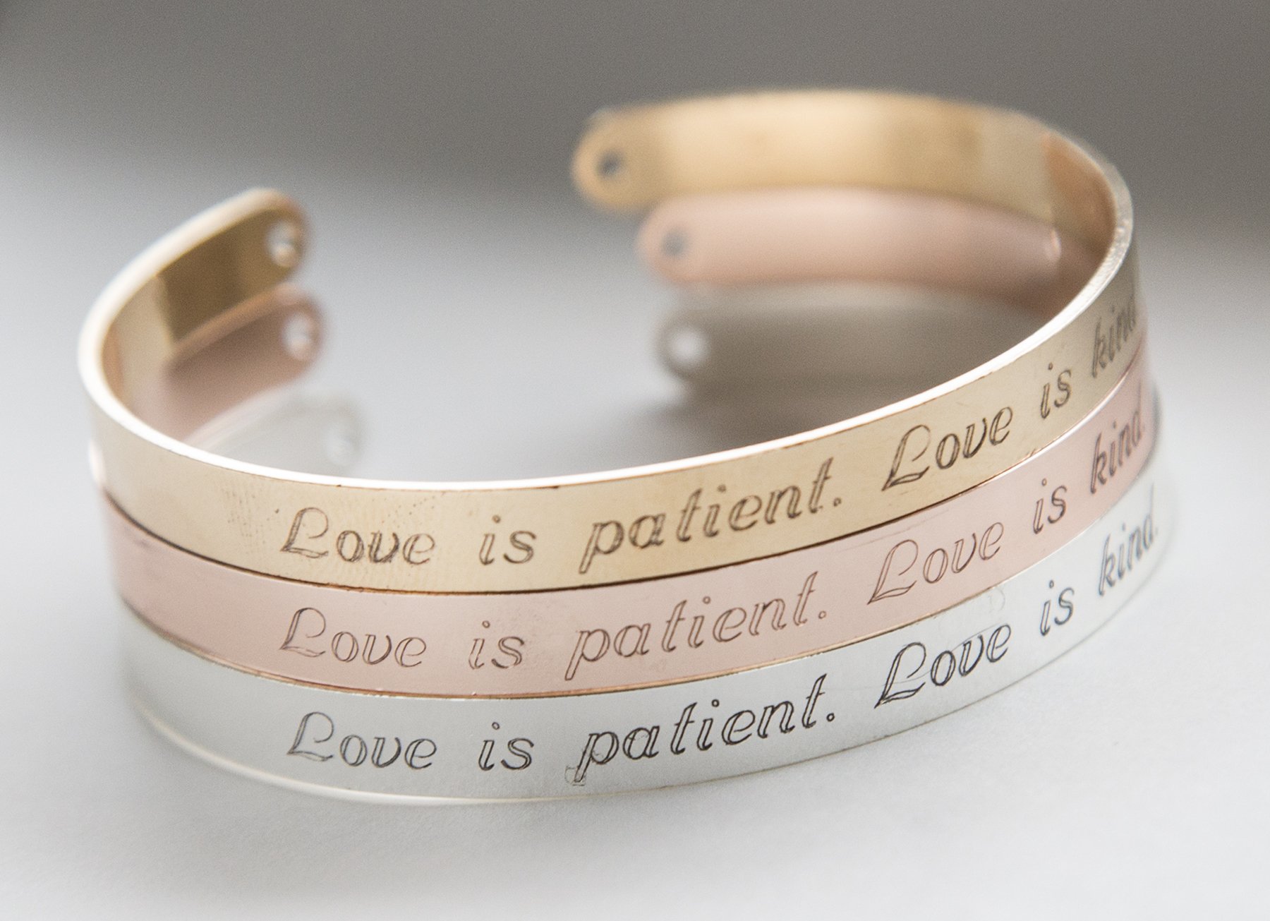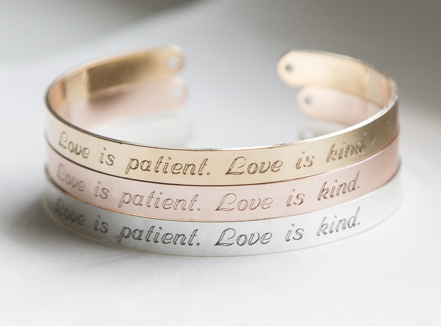 In summary, the Love is Patient Love is Kind Bracelet is a beautiful, adjustable cuff that combines elegance with a powerful message. With customization options available, you can create a unique piece that resonates with your personal beliefs or those of your loved ones. Order yours today and experience the joy of wearing or gifting this meaningful bracelet.