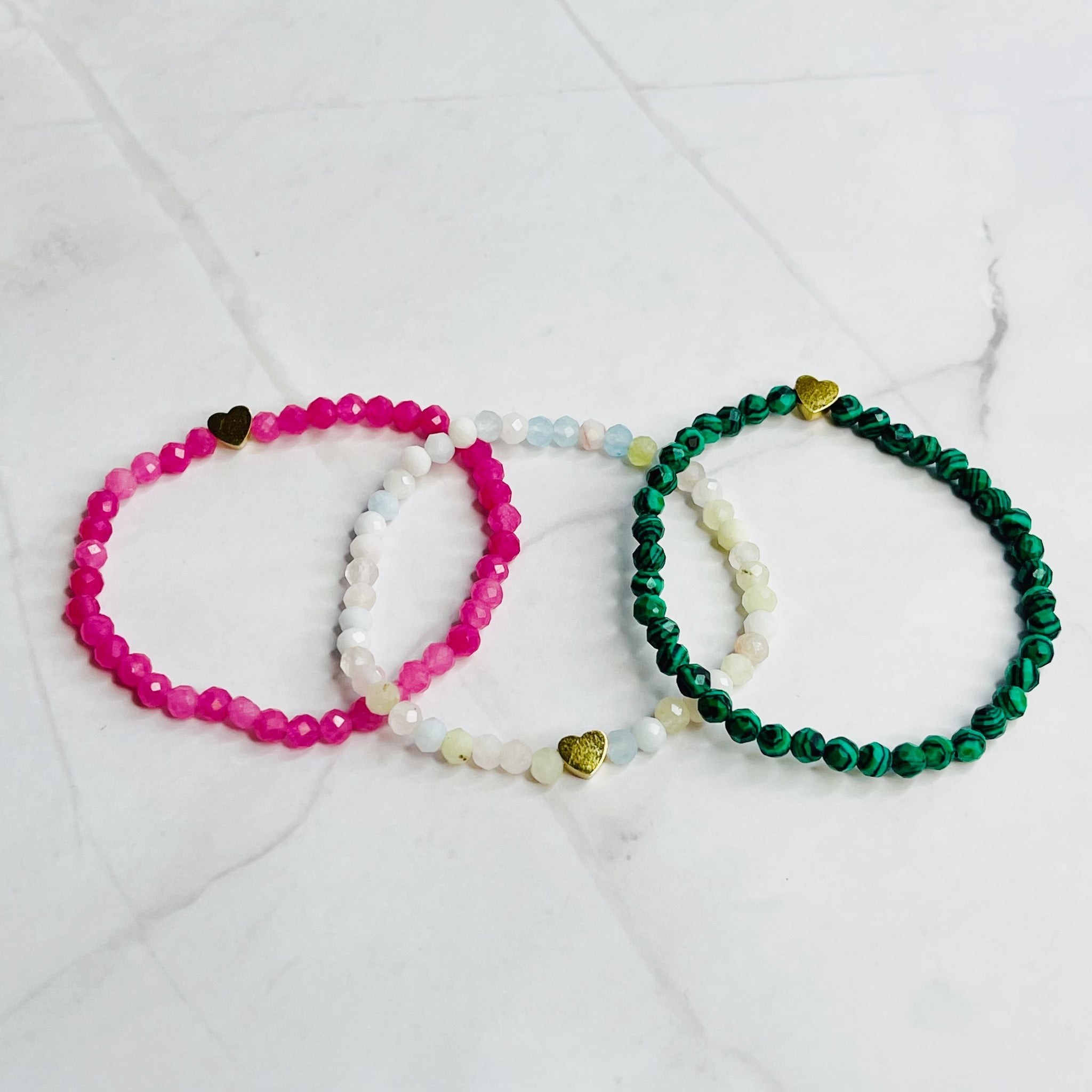 This bracelet is made from high-quality natural stone beads, ensuring that each piece is unique and full of character. The stones are carefully selected for their beauty and durability, allowing you to enjoy this accessory for years to come. The heart bead is not only stylish but also features a tarnish and water-resistant finish, ensuring that it maintains its shine and beauty even with regular wear.