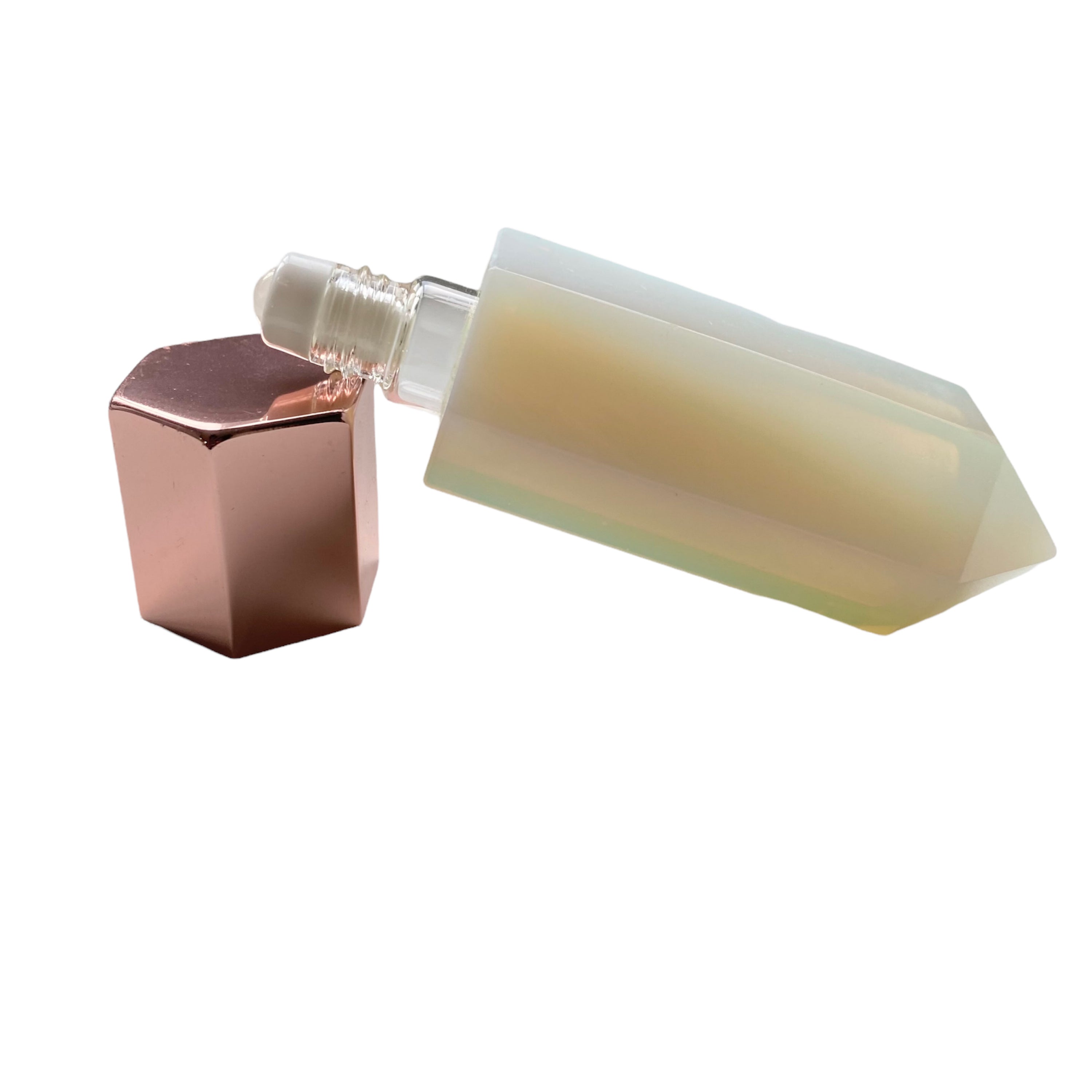 The Luxe Gemstone Perfume Bottle is available in four exquisite gemstone options: Opalite, Amethyst, Rose Quartz, and Green Fluorite. Each gemstone is known for its unique properties and beauty, allowing you to choose a bottle that resonates with your personal style or intentions. Opalite is known for its calming energy, Amethyst for its spiritual protection, Rose Quartz for love and compassion, and Green Fluorite for healing and balance.