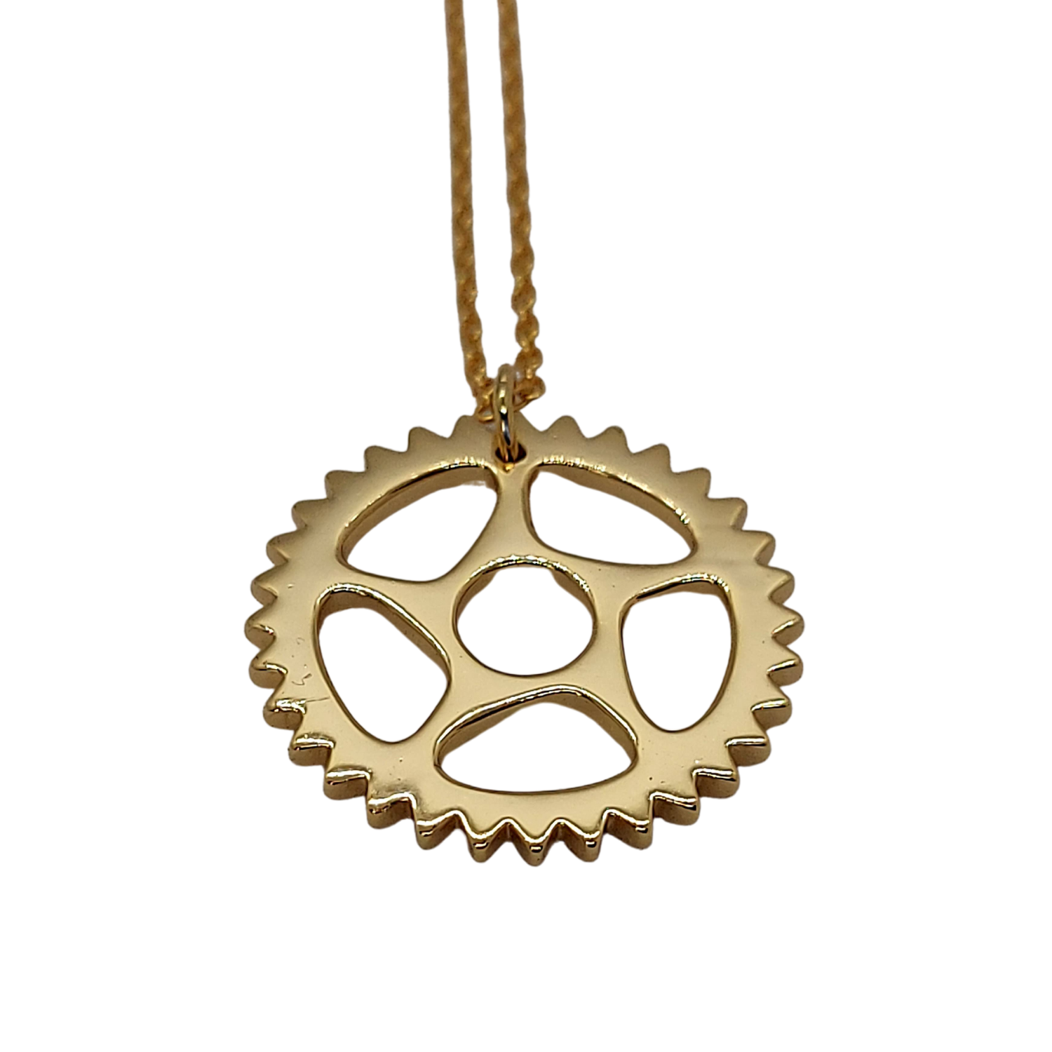 This necklace features a distinctive bike chain ring design that is both modern and timeless. It is an ideal accessory for cyclists and bike lovers who want to showcase their passion in a fashionable way. The intricate details of the bike chain ring symbolize the connection between the rider and their bike, making it a meaningful piece for anyone who enjoys cycling.