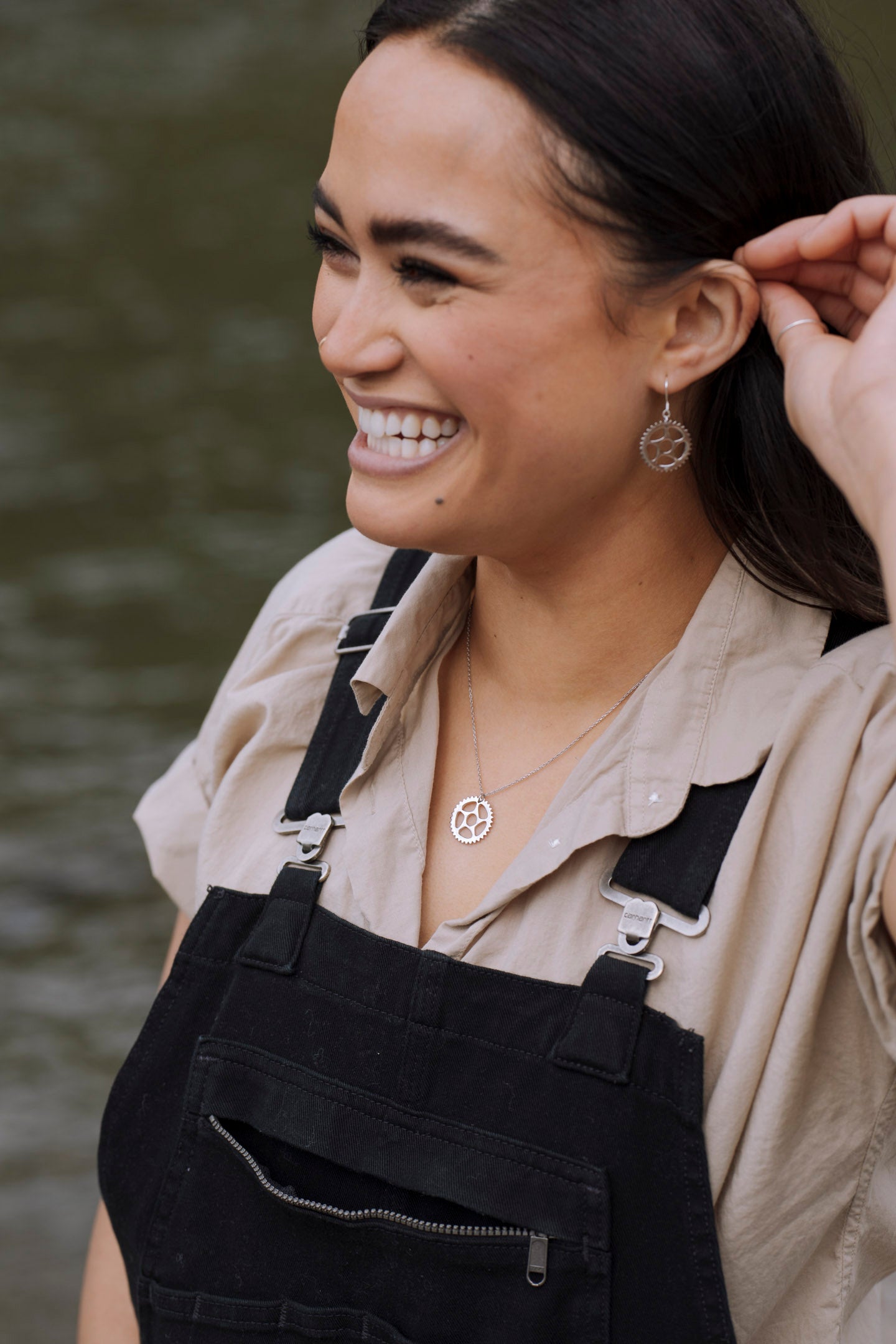 The Maeve - Bike Chain Ring Necklace is a stunning piece of jewelry that perfectly blends style and passion for cycling. Made from high-quality 925 sterling silver, this necklace is designed for those who find joy in riding their bikes and want to express that love through unique accessories. The name 'Maeve' signifies joy and leadership, making this necklace not just a piece of jewelry, but a statement of your passion and personality.