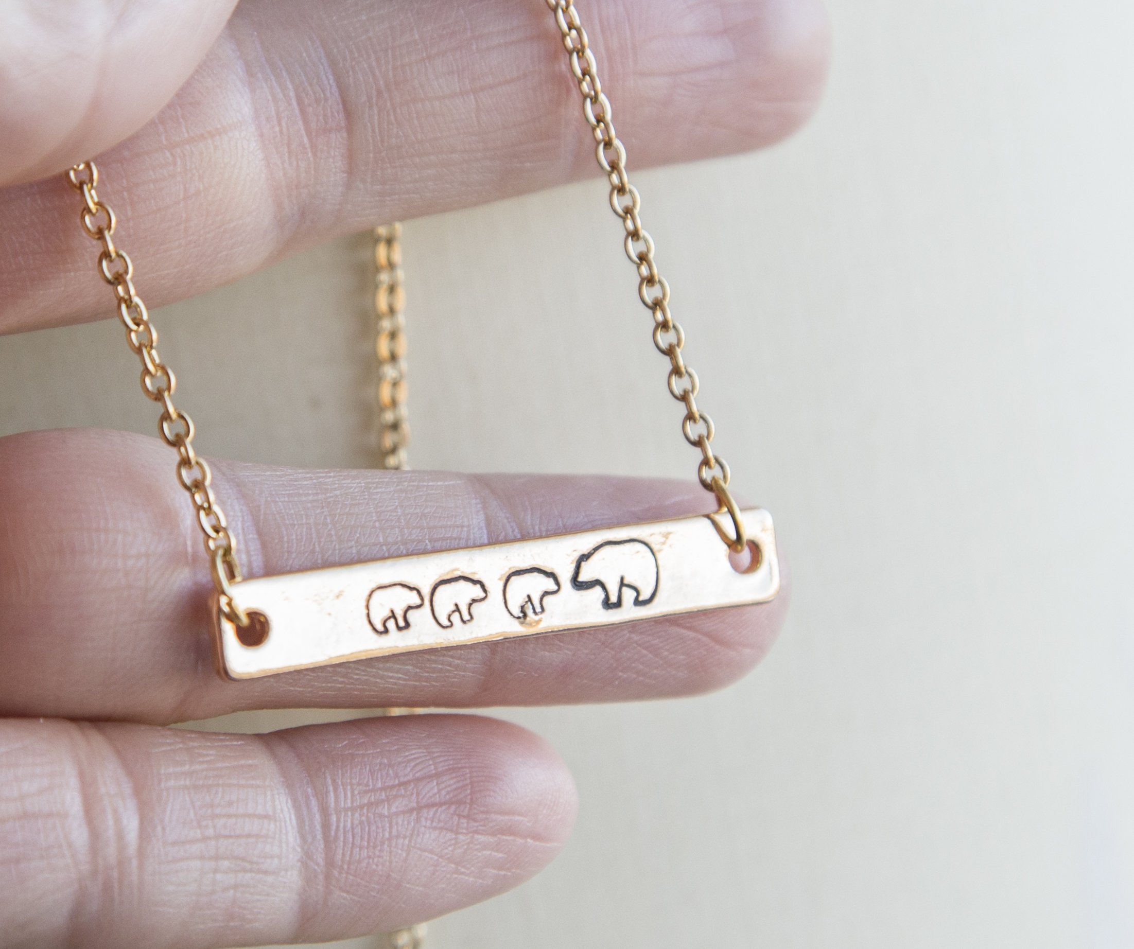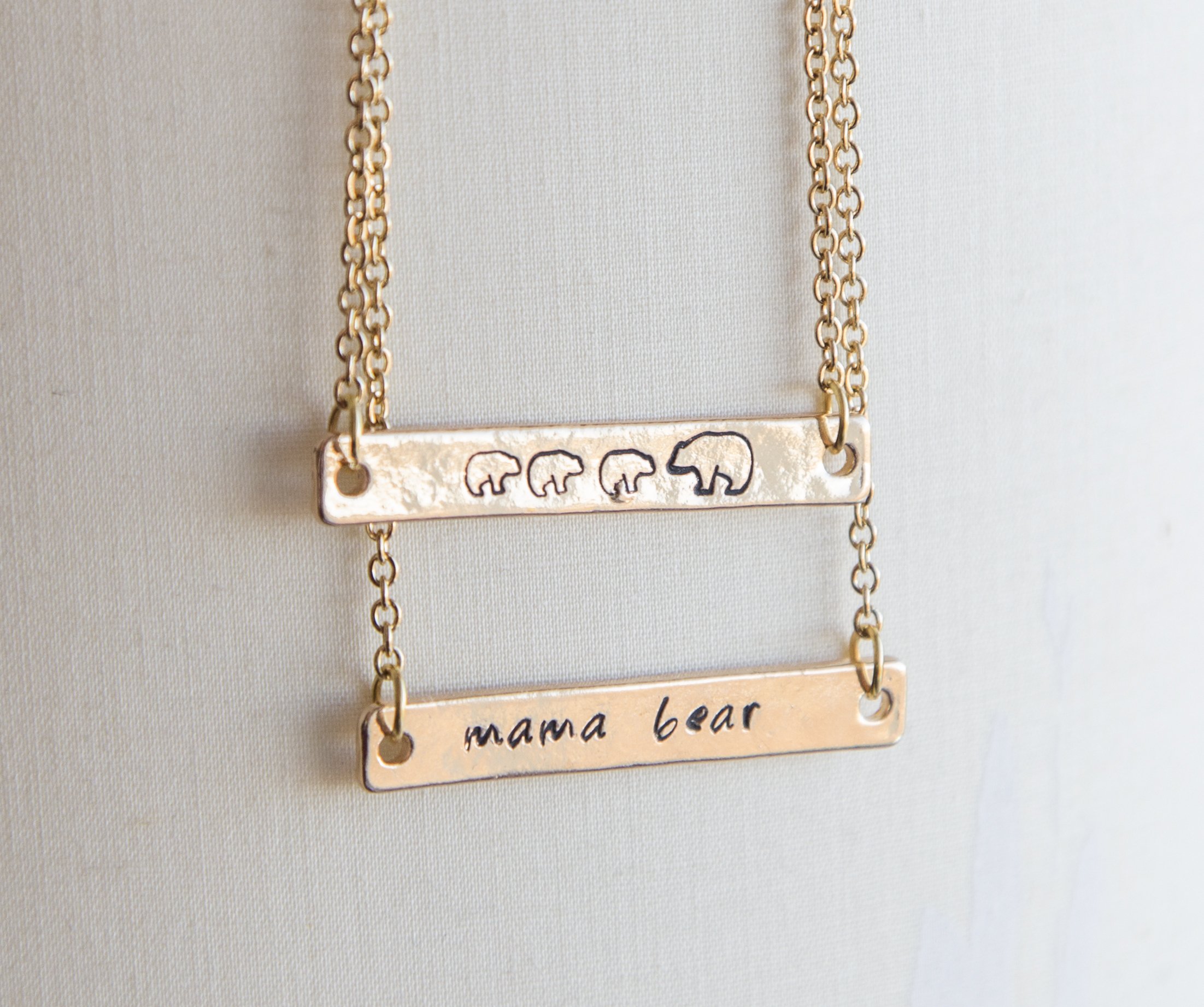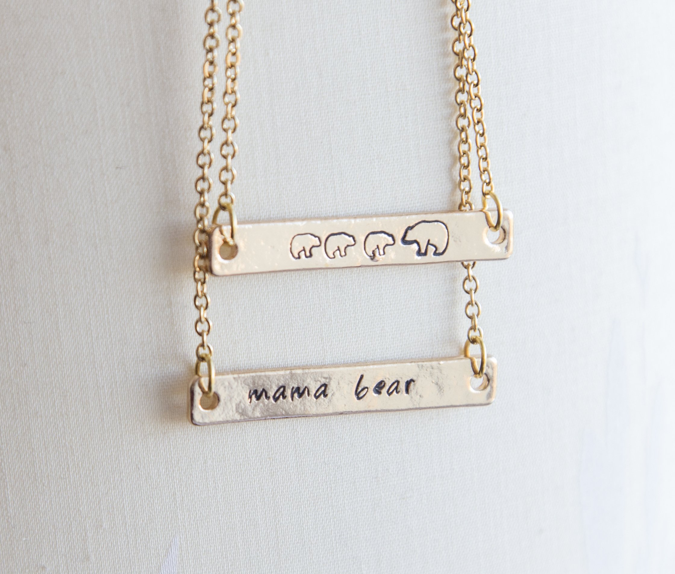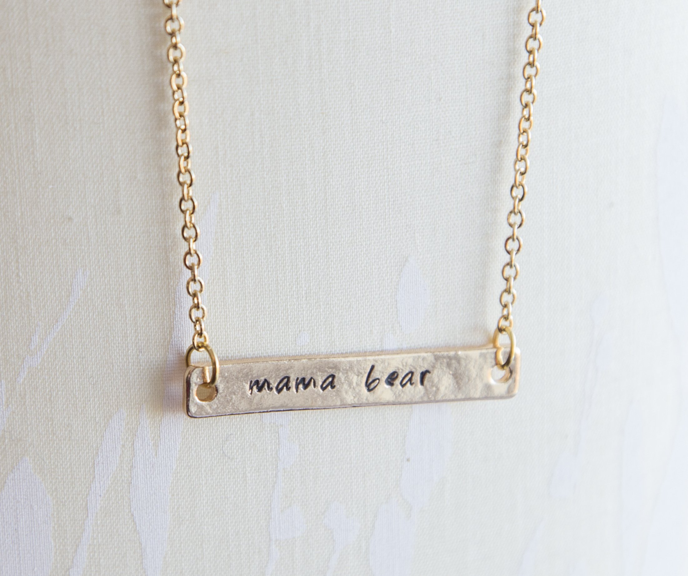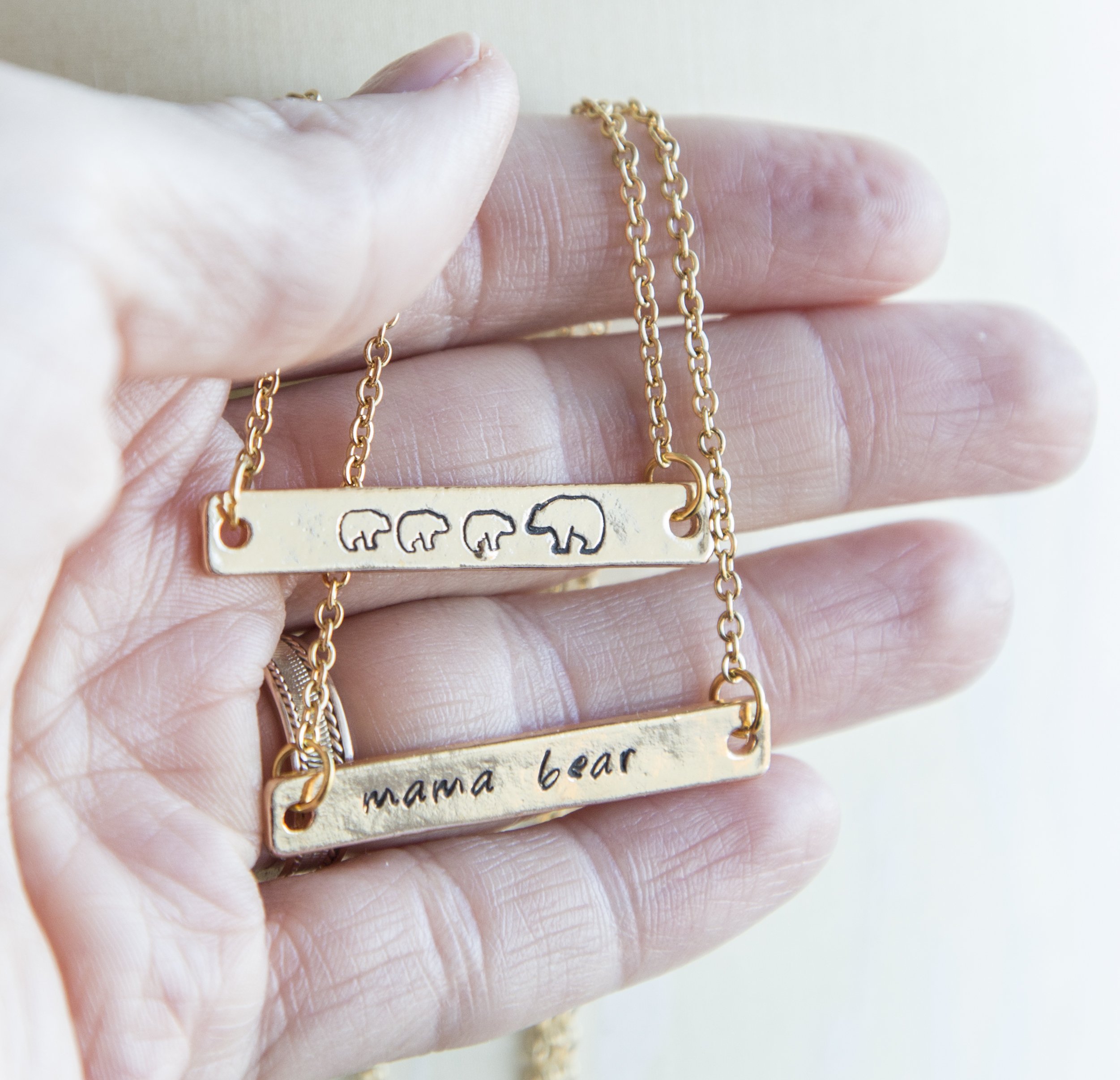 If you have a specific message or name you would like stamped on the bar, you can easily request this during checkout. Simply leave your request in the 'Special instructions for seller' box, and we will do our best to accommodate your wishes. This feature makes the Mama Bear Necklace an excellent choice for personalized gifts, whether for a birthday, anniversary, or just because.