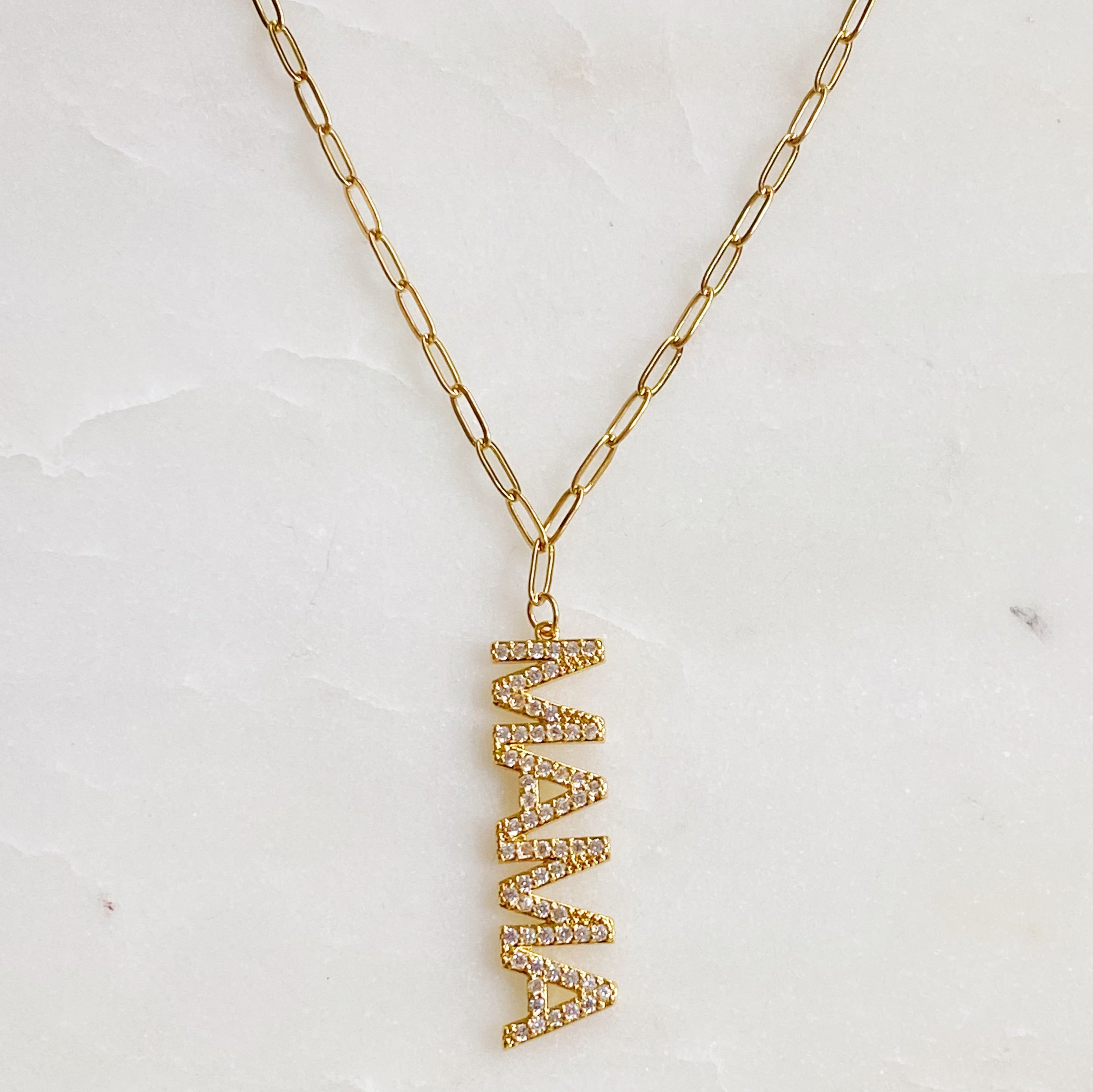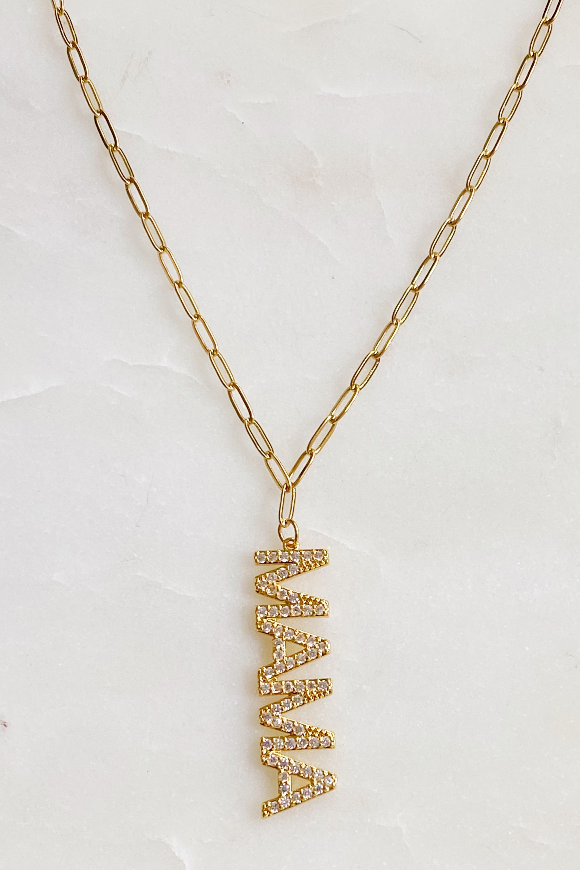 This necklace can be styled in various ways, making it a versatile addition to your jewelry collection. Pair it with a simple t-shirt and jeans for a casual look, or wear it with a dress for a more polished appearance. The Mama Drop Pendant Necklace is perfect for layering with other necklaces, allowing you to create a unique and personalized style.