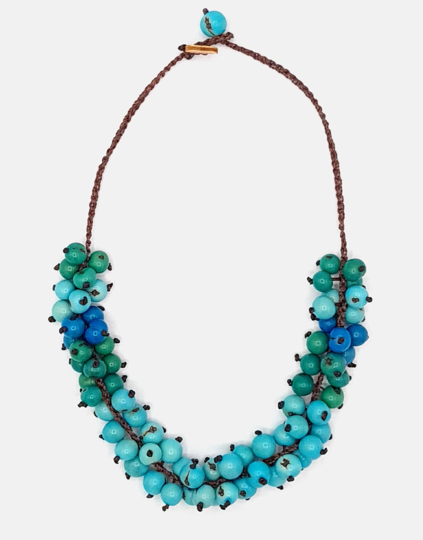 In summary, the Maria Acai Crochet Necklace - Blue is a beautiful, sustainable, and ethically made accessory that you can feel good about wearing. With its unique design, eco-friendly materials, and handmade craftsmanship, this necklace is sure to become a cherished part of your jewelry collection.
