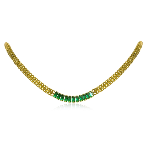 The MARISSA Cuban Chain Necklace features a unique 3D woven Cuban link design that adds depth and texture to your outfit. Each link is meticulously crafted to create a seamless flow, while the glistening baguette stones are prong set on the front, providing a touch of sparkle that catches the light beautifully. This necklace is designed to complement any collar type, making it a versatile addition to your jewelry collection.