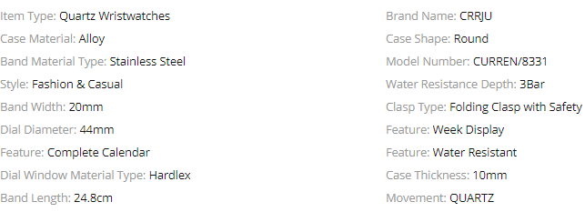 The MEILLEUR METAL TIMEPIECE features a case thickness of 10 MM and a dial diameter of 44 MM, providing a bold yet comfortable fit on your wrist. The 20 MM bandwidth ensures that the watch sits securely, while the 24.8 CM band length accommodates a variety of wrist sizes. Each watch is individually poly bag wrapped and comes with care instructions to help you maintain its pristine condition.