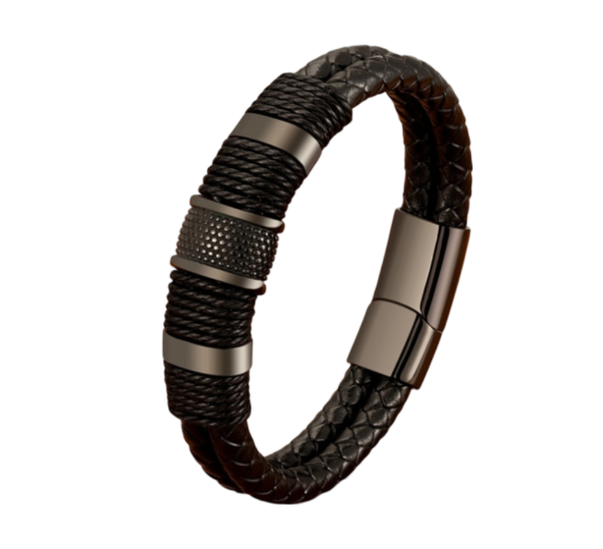 The bracelet features a unique combination of materials, including high-quality leather, sturdy rope, and stainless steel. The leather gives it a classic look, while the stainless steel adds a contemporary touch. The rope detailing adds an extra layer of sophistication, making it a versatile accessory that can be worn on various occasions.