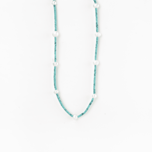 The Meribella Pearl Choker Necklace is a stunning piece that combines elegance and uniqueness, making it a must-have accessory for any fashion enthusiast. This handmade choker features real freshwater pearl beads, which are known for their natural beauty and luster. The addition of Afghan turquoise beads adds a vibrant touch, creating a beautiful contrast that enhances the overall design.