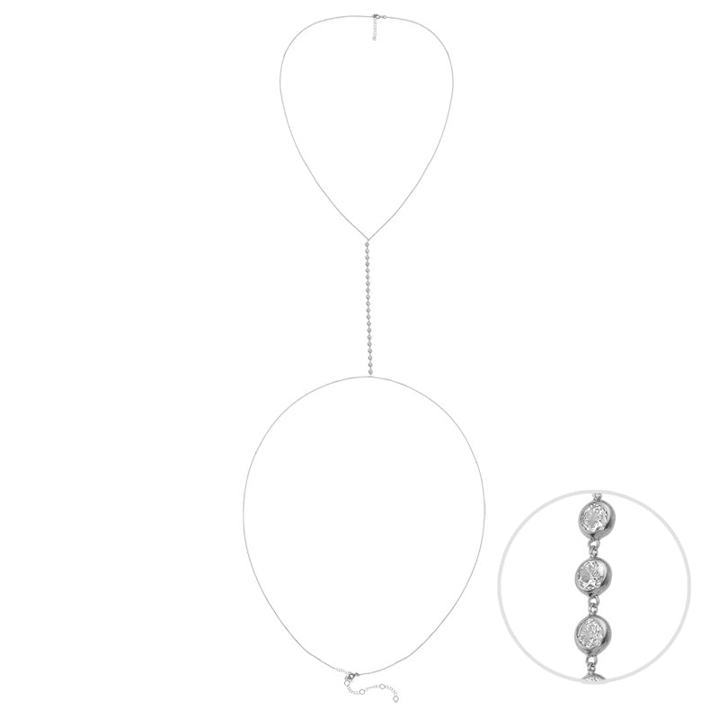 The Mimosa body chain features a 26-inch (66 cm) silver necklace chain that gracefully drapes around your neck, providing a stunning focal point for any ensemble. The chain is complemented by a 1.75-inch (4.5 cm) extension, allowing for a customizable fit that suits your personal style. The waist chain measures an impressive 35 inches (89 cm) in length, ensuring it fits comfortably around your waist while accentuating your curves.