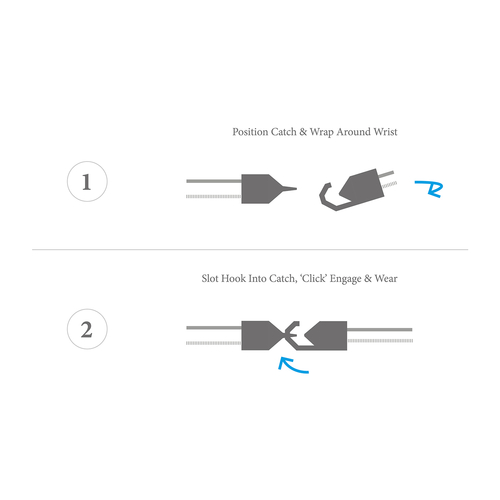 This bracelet is available in four bracelet lengths, 17cm, 19cm, 21cm or 23cm in circumference. To take the bracelet on or off your wrist, simply slot the hook into the facetted lantern clasp and secure.