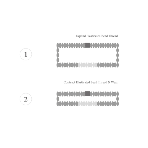 This bracelet is available in four bracelet lengths, 17cm, 19cm, 21cm or 23cm in circumference, with the elastic nylon thread able to expand to fit onto your wrist. To take the bracelet on or off your wrist, simply slide the bracelet over your hand. Less is More.