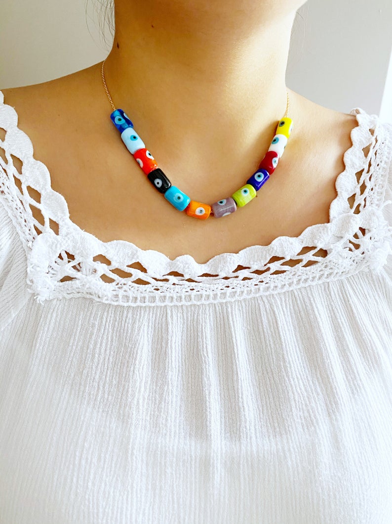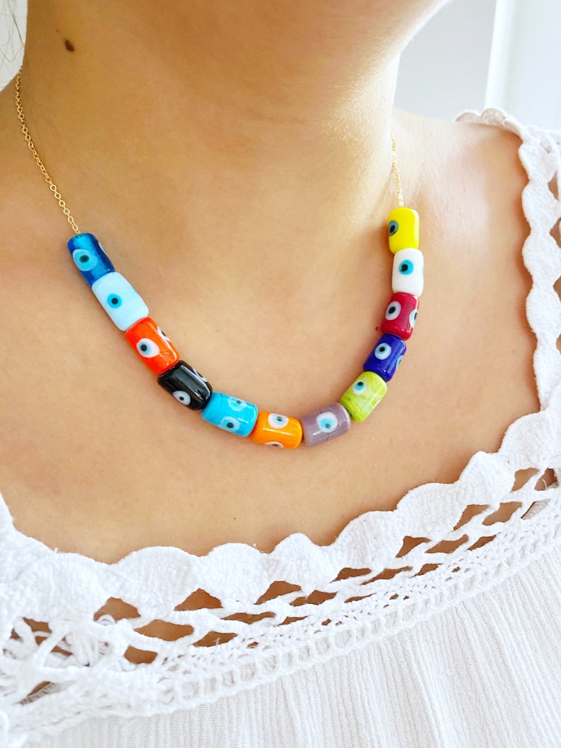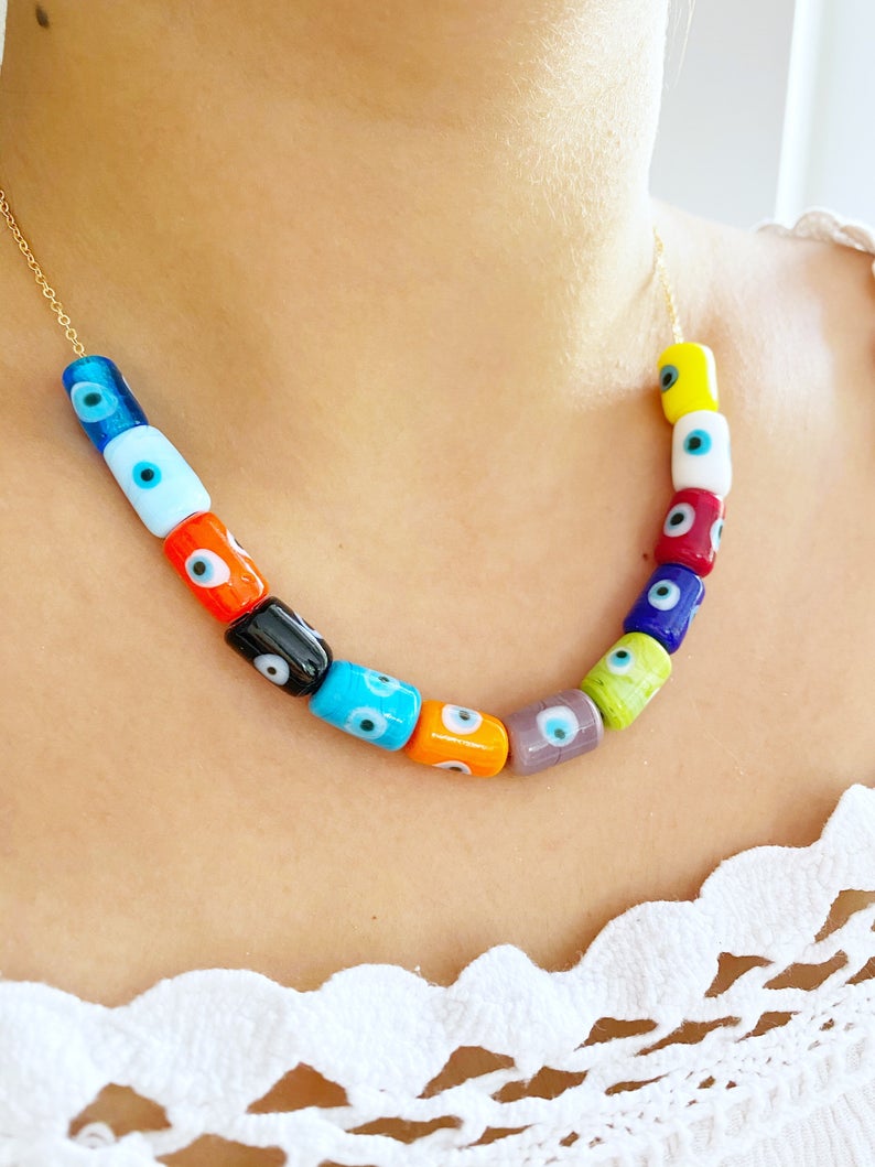 The Murano Evil Eye Necklace is versatile enough to be worn on various occasions. Whether you're dressing up for a special event or adding a touch of elegance to your everyday outfit, this necklace is the perfect accessory. Its colorful beads can easily complement a range of outfits, making it a staple in your jewelry collection.