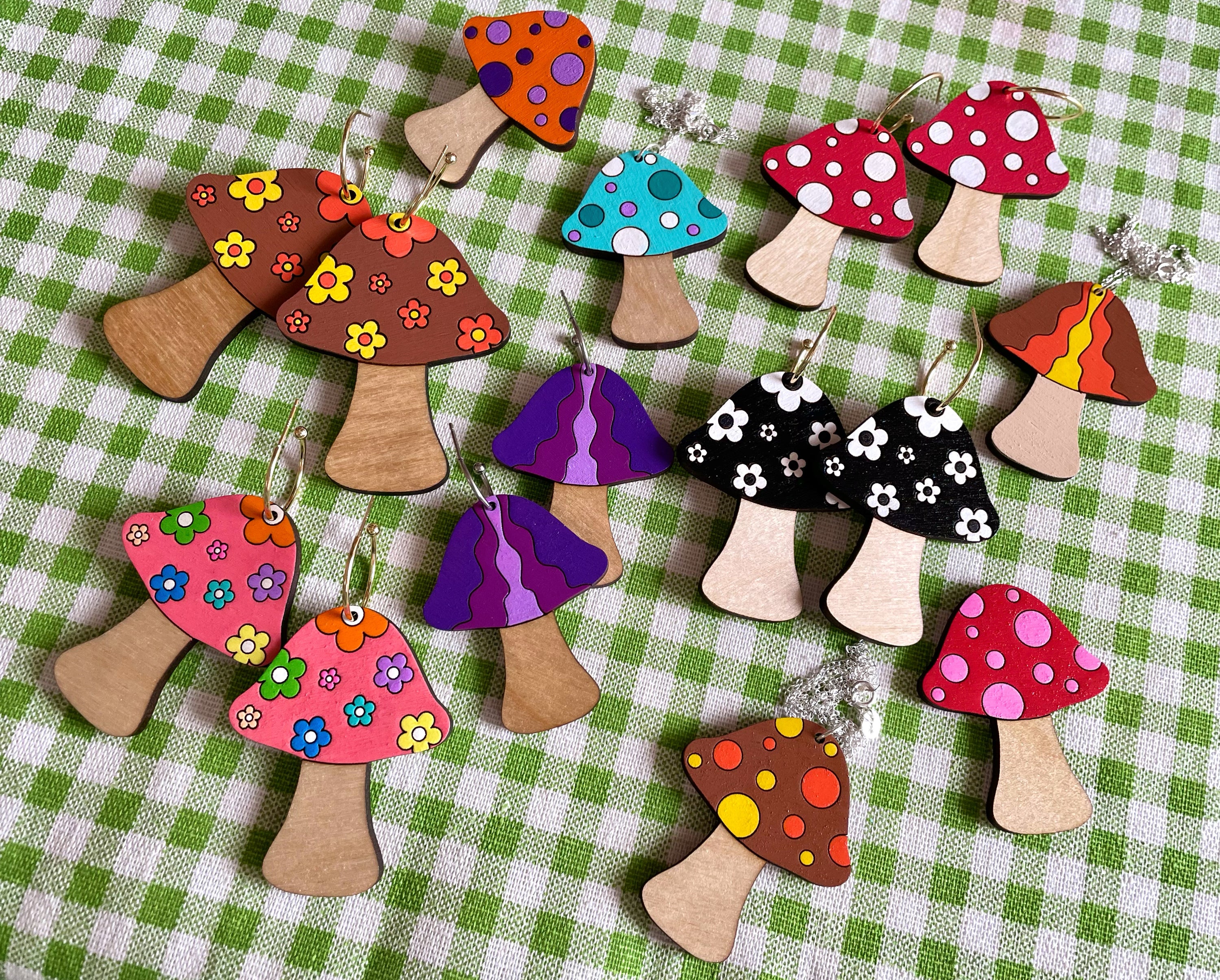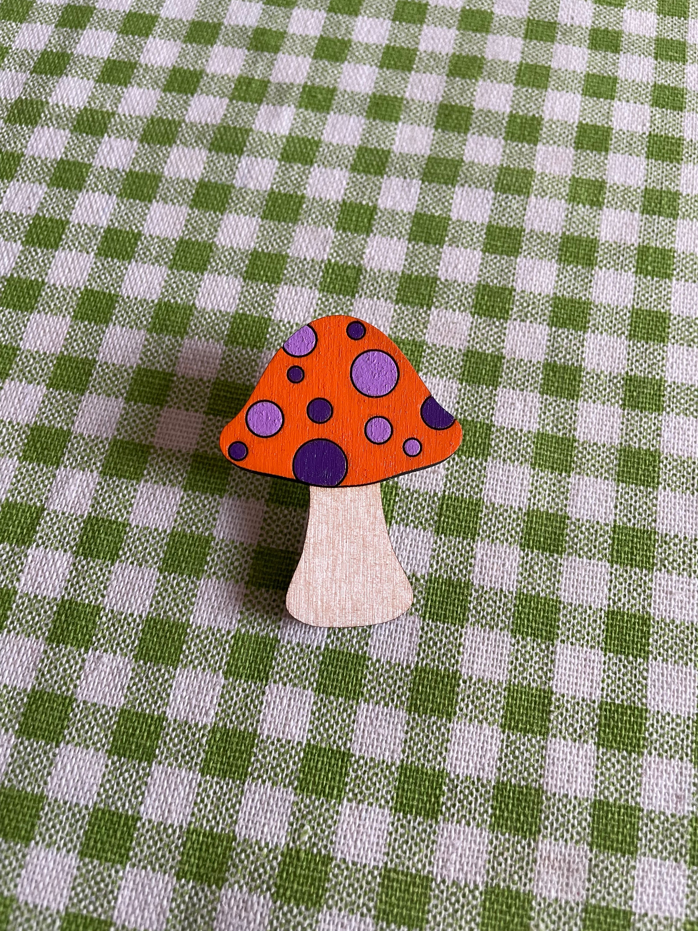This Mushroom Brooch/Hairclip is heavily influenced by the vibrant fashions and trends of the 1960s and 70s. The floral design adds a touch of whimsy and nostalgia, making it an ideal accessory for those who appreciate retro aesthetics. Whether you wear it as a brooch on your jacket or as a hairclip to adorn your hairstyle, it is sure to attract compliments and spark conversations.