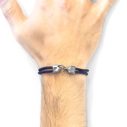The Navy Blue Cromer Silver and Rope Bracelet was both designed and skilfully handcrafted completely in Great Britain. Combining British craft manufacturing with a discerning modern-minimalist style, this ANCHOR & CREW bracelet features: