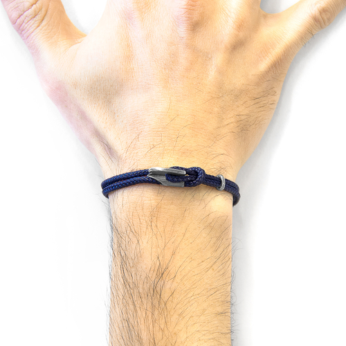 The Navy Blue Padstow Silver and Rope Bracelet was both designed and skilfully handcrafted completely in Great Britain. Combining British craft manufacturing with a discerning modern-minimalist style, this ANCHOR & CREW bracelet features: