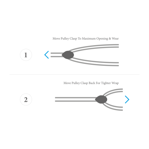 This bracelet is one size fits all, with the rope able to extend or tighten to suit your wrist size. To take the bracelet on or off your wrist, simply push or pull the dividing slider along the rope to make the wrist-gap smaller or larger.
