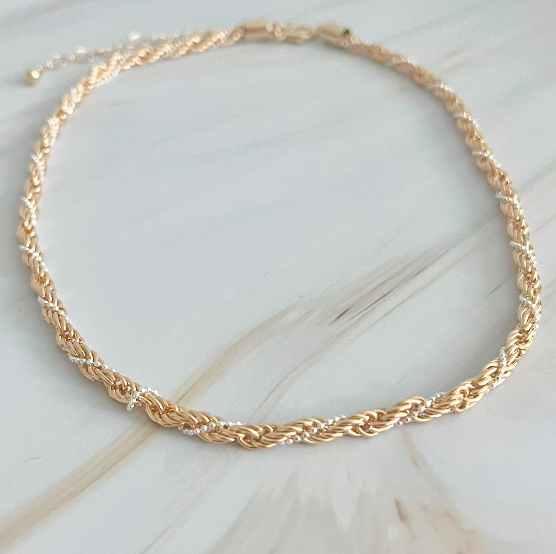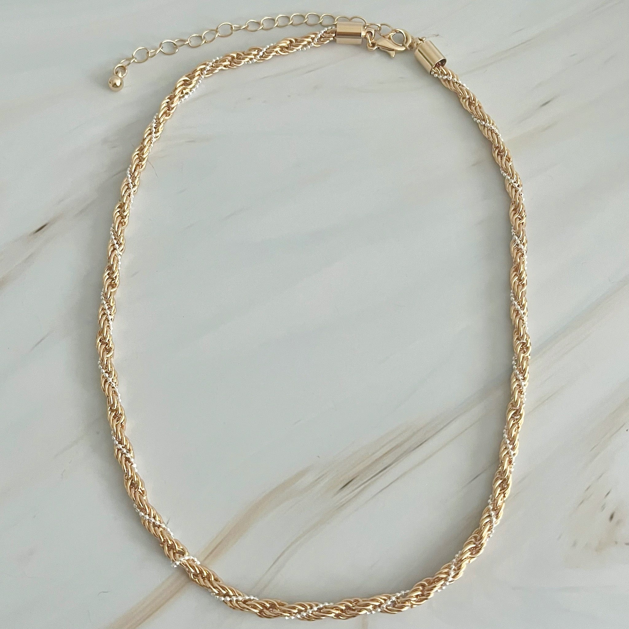 Introducing the On Trend Rope Chain Necklace, a stunning accessory that is designed to elevate your style effortlessly. This modern rope chain necklace is not just a piece of jewelry; it is a statement that adds a classic and chic touch to any outfit. Whether you're dressing up for a special occasion or looking to enhance your everyday wear, this necklace is the perfect choice.