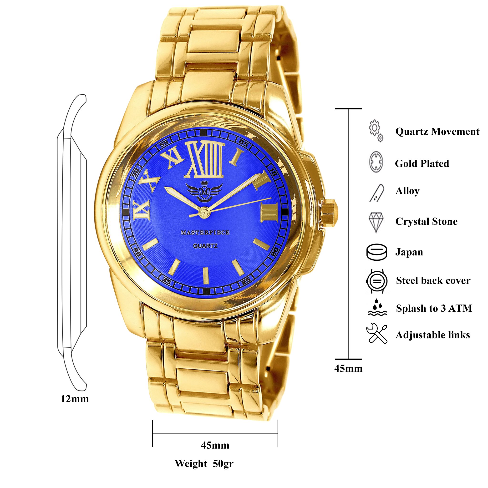 With a length of 45 MM and a width of 12 MM, the Oppressive watch is designed to fit comfortably on your wrist. Weighing only 50 grams, it is lightweight enough for all-day wear. The watch features 100% adjustable links, allowing you to customize the fit to your liking. This ensures that you can wear it comfortably, no matter the occasion.