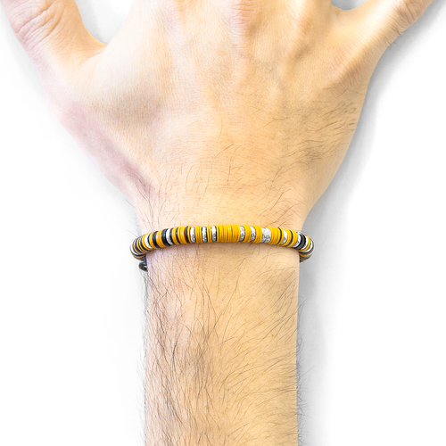 The Orange Kariba Silver and Vinyl Disc Macrame Bracelet was both designed and skilfully handcrafted completely in Great Britain. Combining British craft manufacturing with a discerning modern-minimalist style, this ANCHOR & CREW bracelet features: