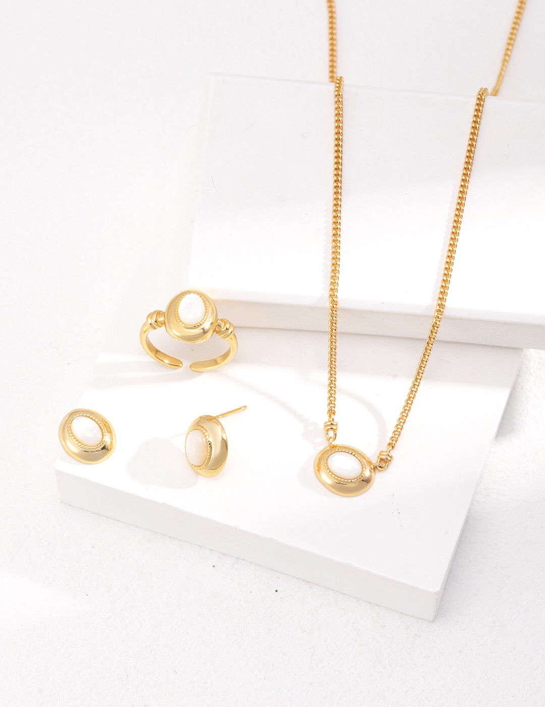 Our Oval Mother of Pearl Earrings are crafted from high-quality materials, ensuring that they are not only beautiful but also practical. The mother of pearl is known for its iridescent sheen, which gives these earrings a unique and eye-catching appearance. The gold vermeil plating provides a tarnish-resistant surface, making these earrings suitable for everyday wear without the worry of fading or discoloration.