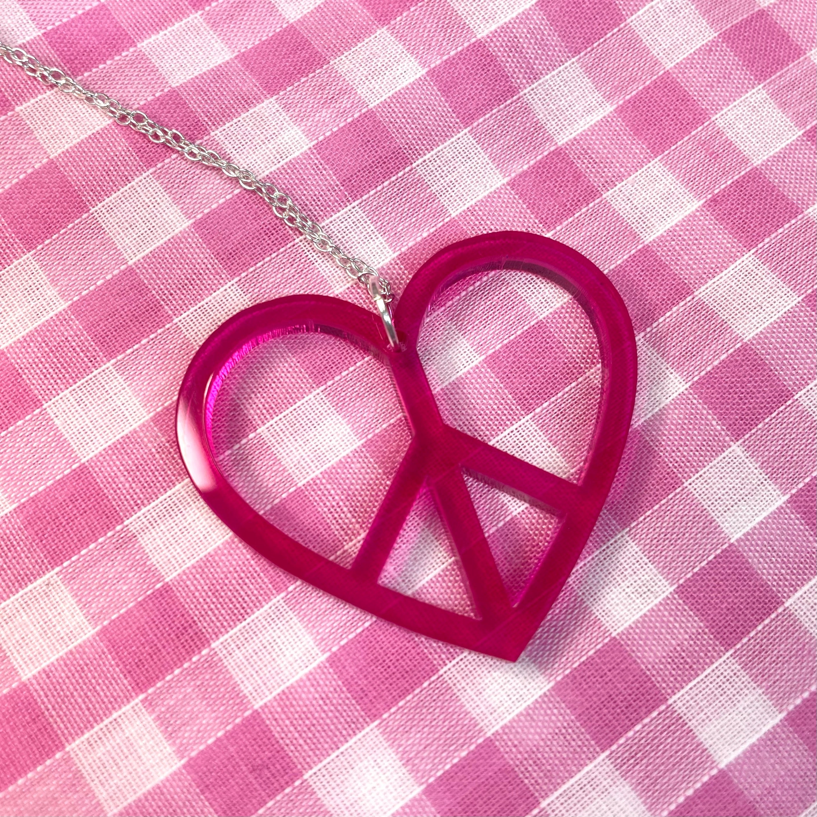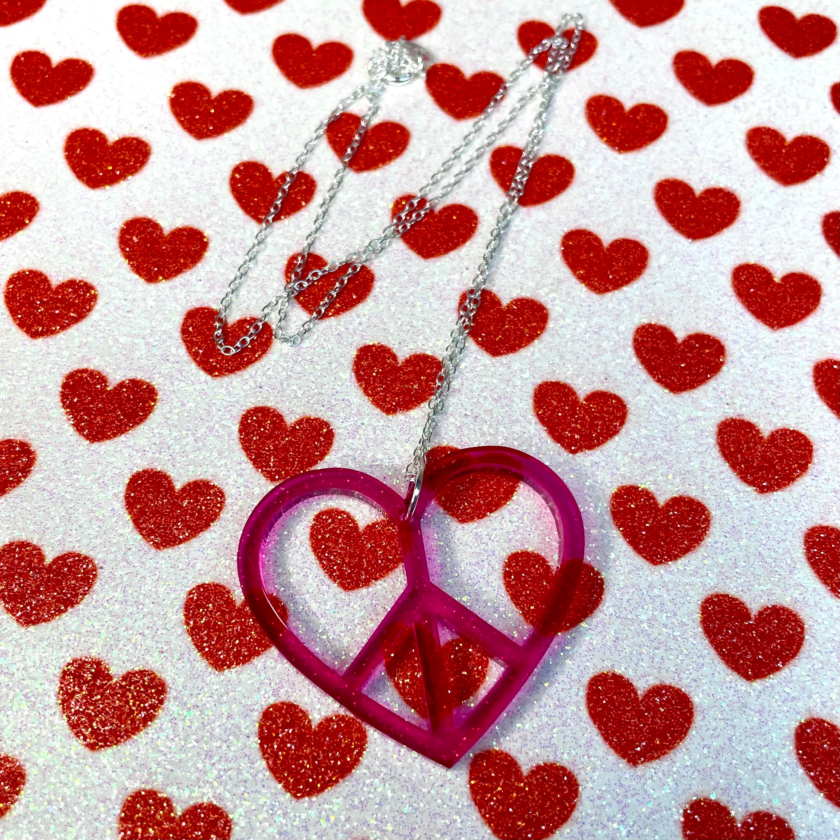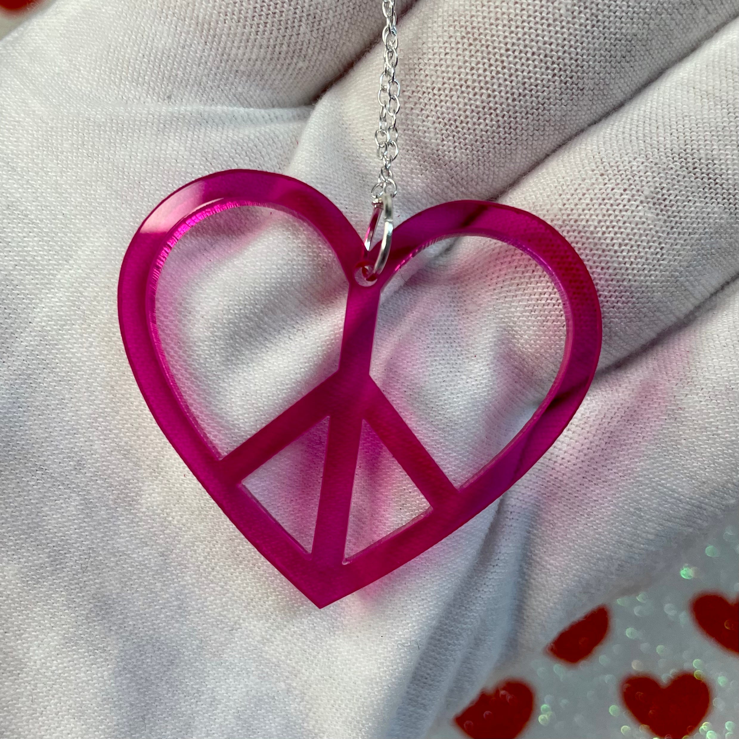 Each Peace Heart Necklace is made to order, ensuring that every piece is crafted with attention to detail and quality. The laser-cut acrylic is not only lightweight but also adds a contemporary touch to the classic design. The sterling silver chain complements the acrylic heart beautifully, providing a sophisticated finish that can elevate any outfit.