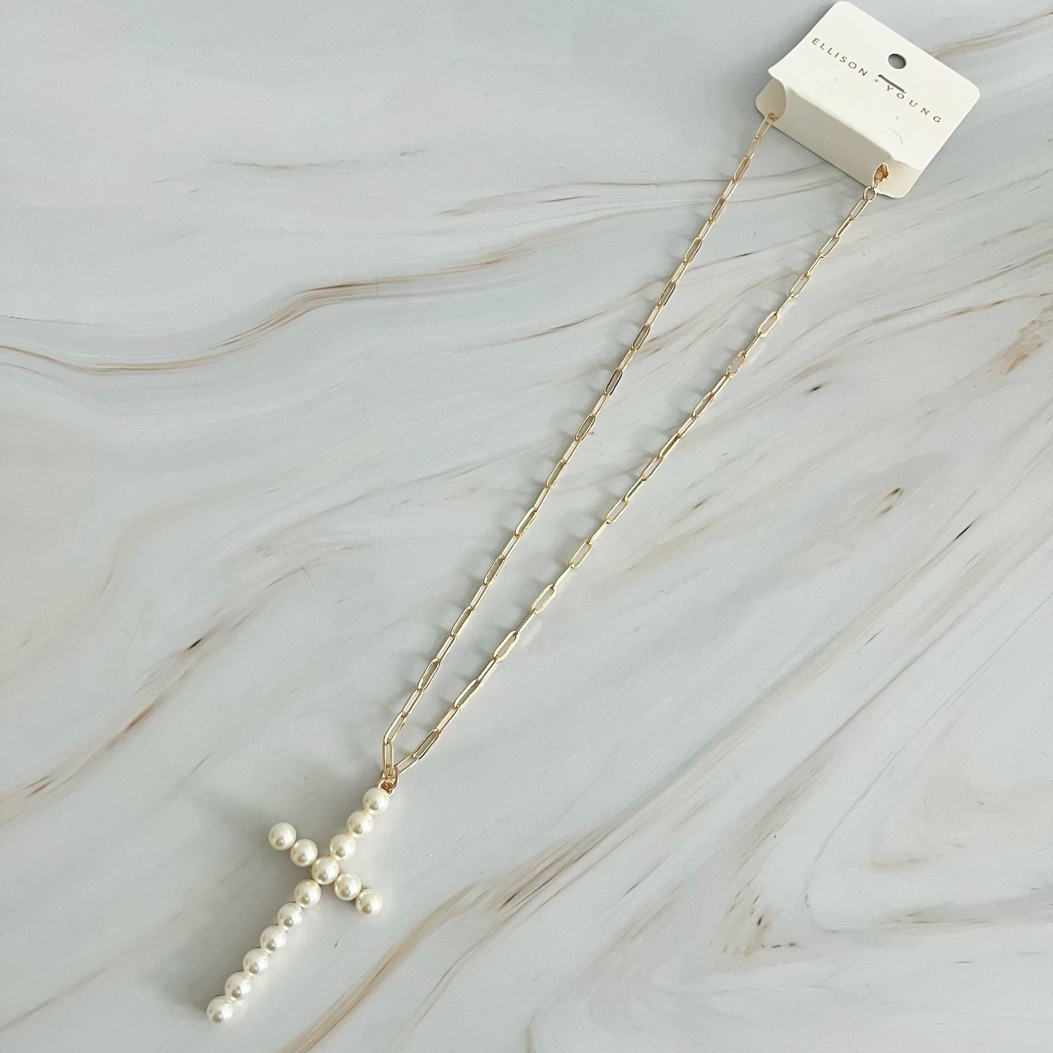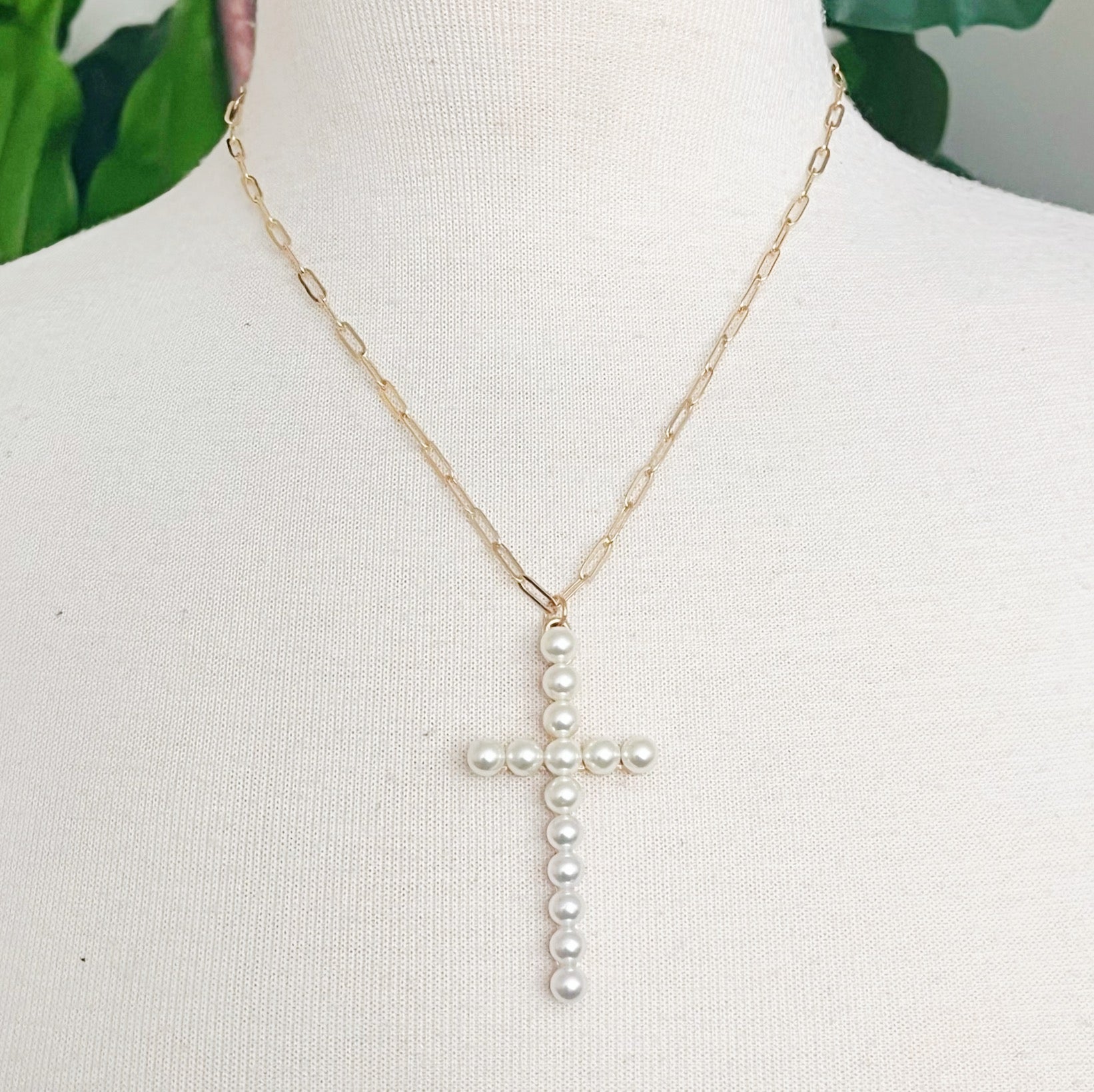 Introducing the stunning Pearl Cross Pendant Clip Chain Necklace, a must-have accessory that effortlessly enhances your style. This exquisite necklace features a bold pearl cross pendant that serves as a striking focal point, making it perfect for both casual and formal occasions. The combination of the elegant pearl cross and the slim link chain creates a harmonious balance that is sure to turn heads.